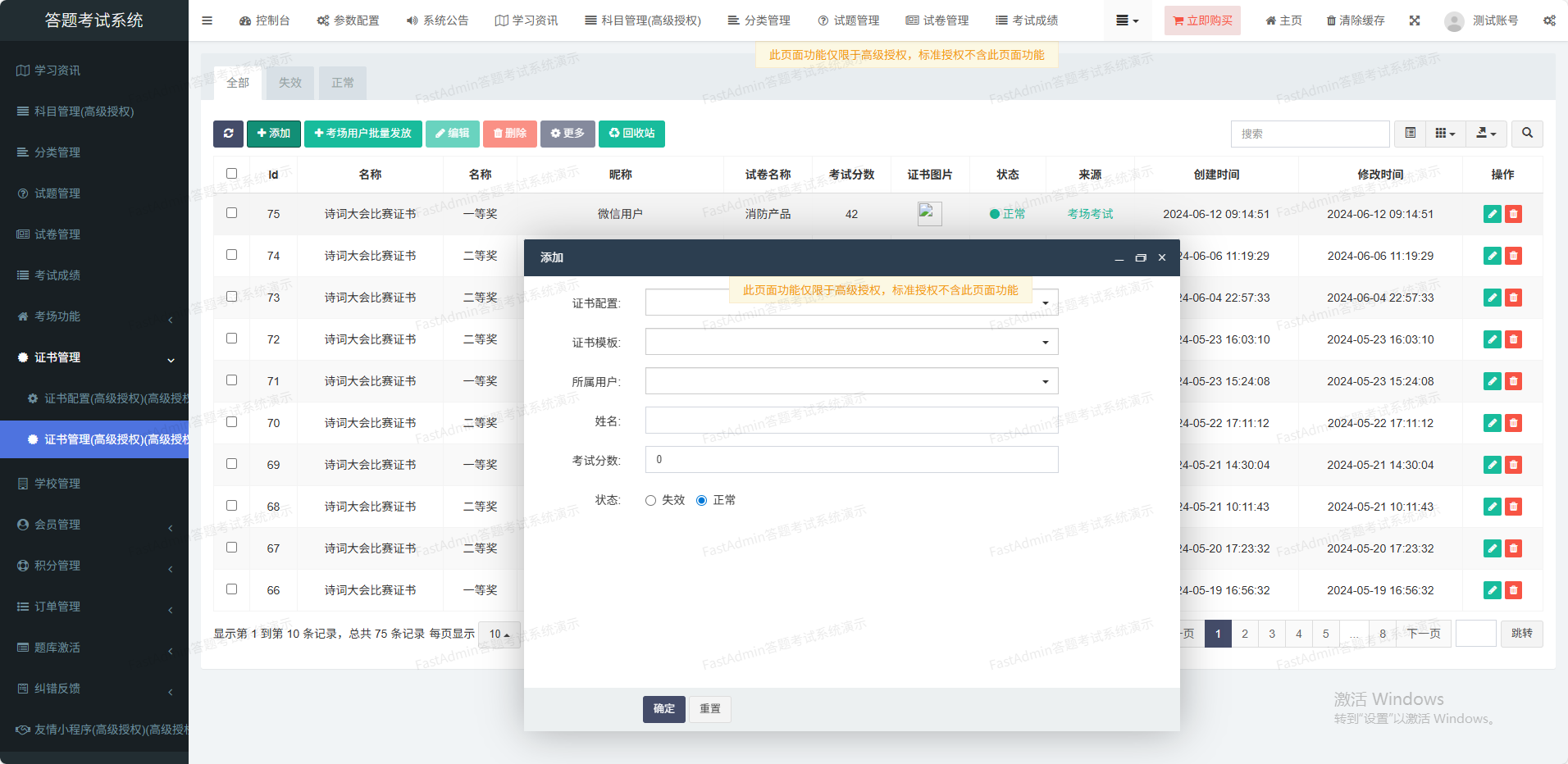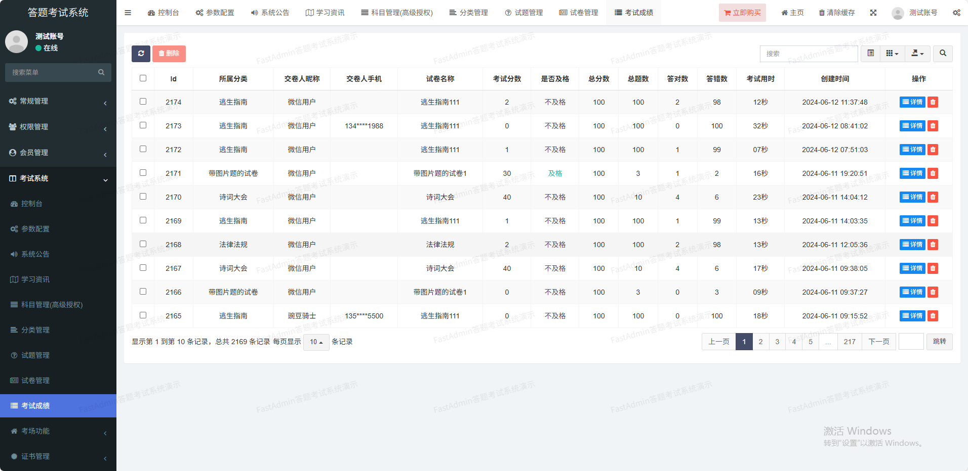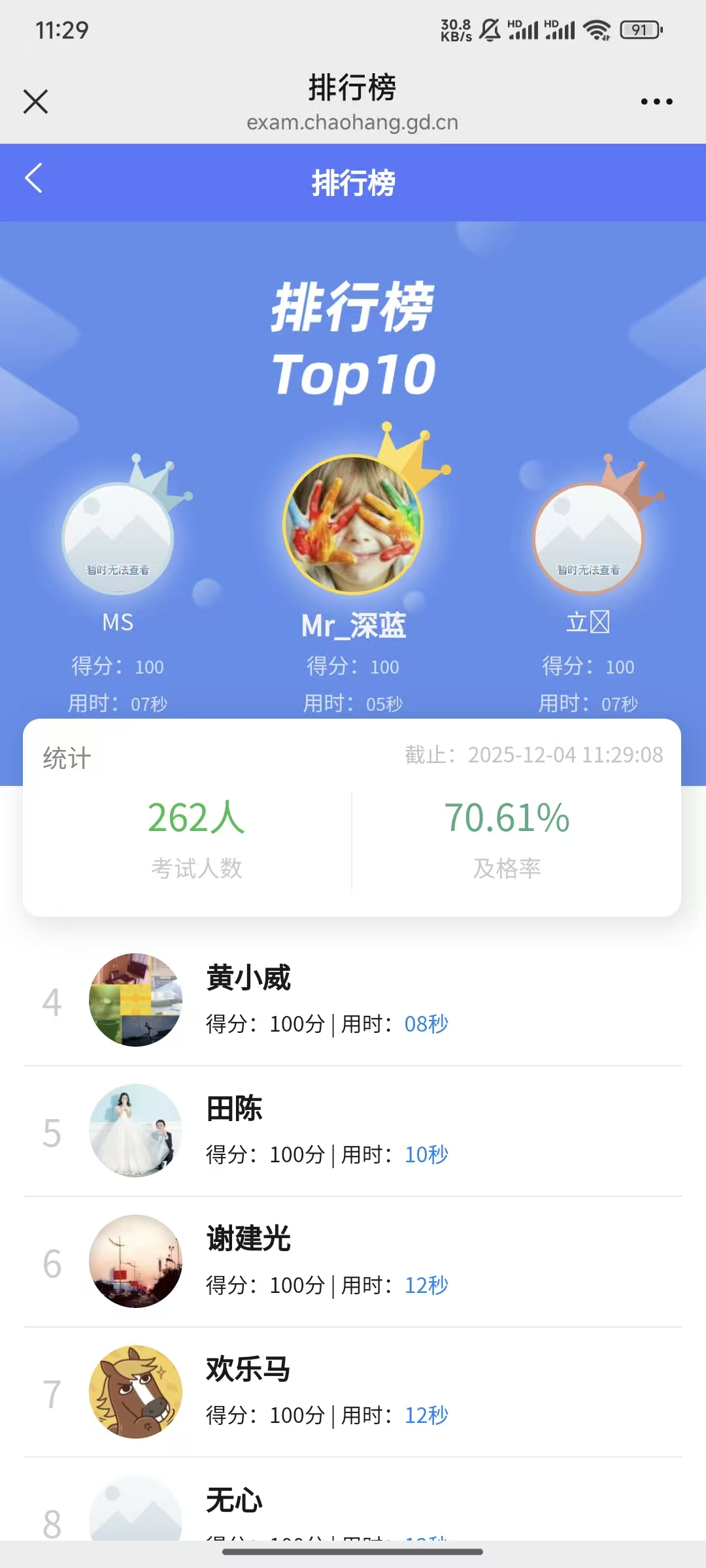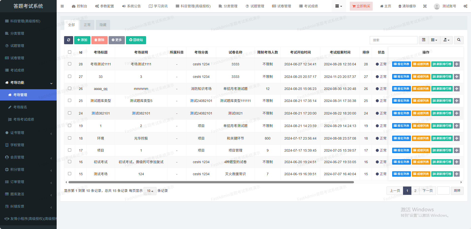 支持考试成绩统计排行榜