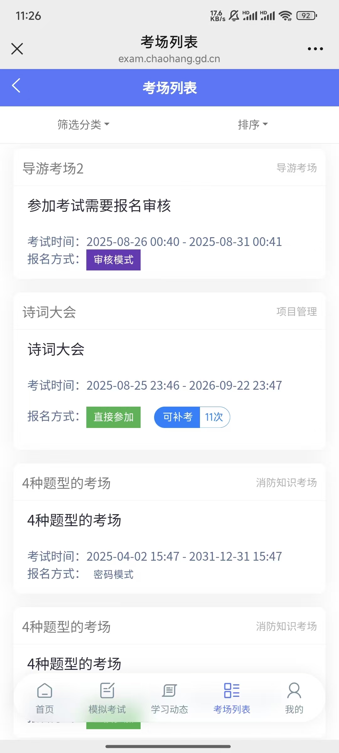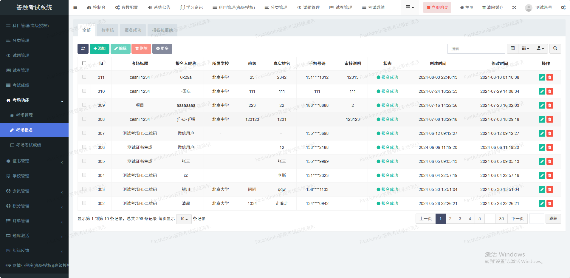 考场支持直接报名、密码模式、审核模式三种报名方式