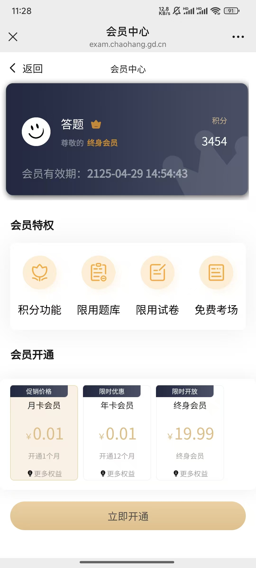 开通会员,每日多渠道得积分,可优惠考试费用或免费考试。