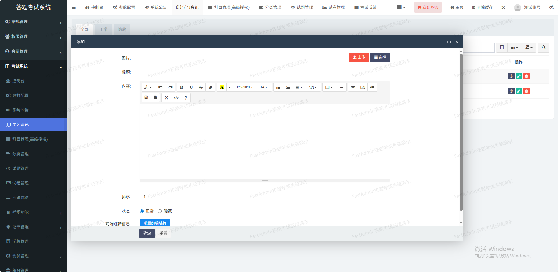 可发布考试、考场相关公告,在首页显示
