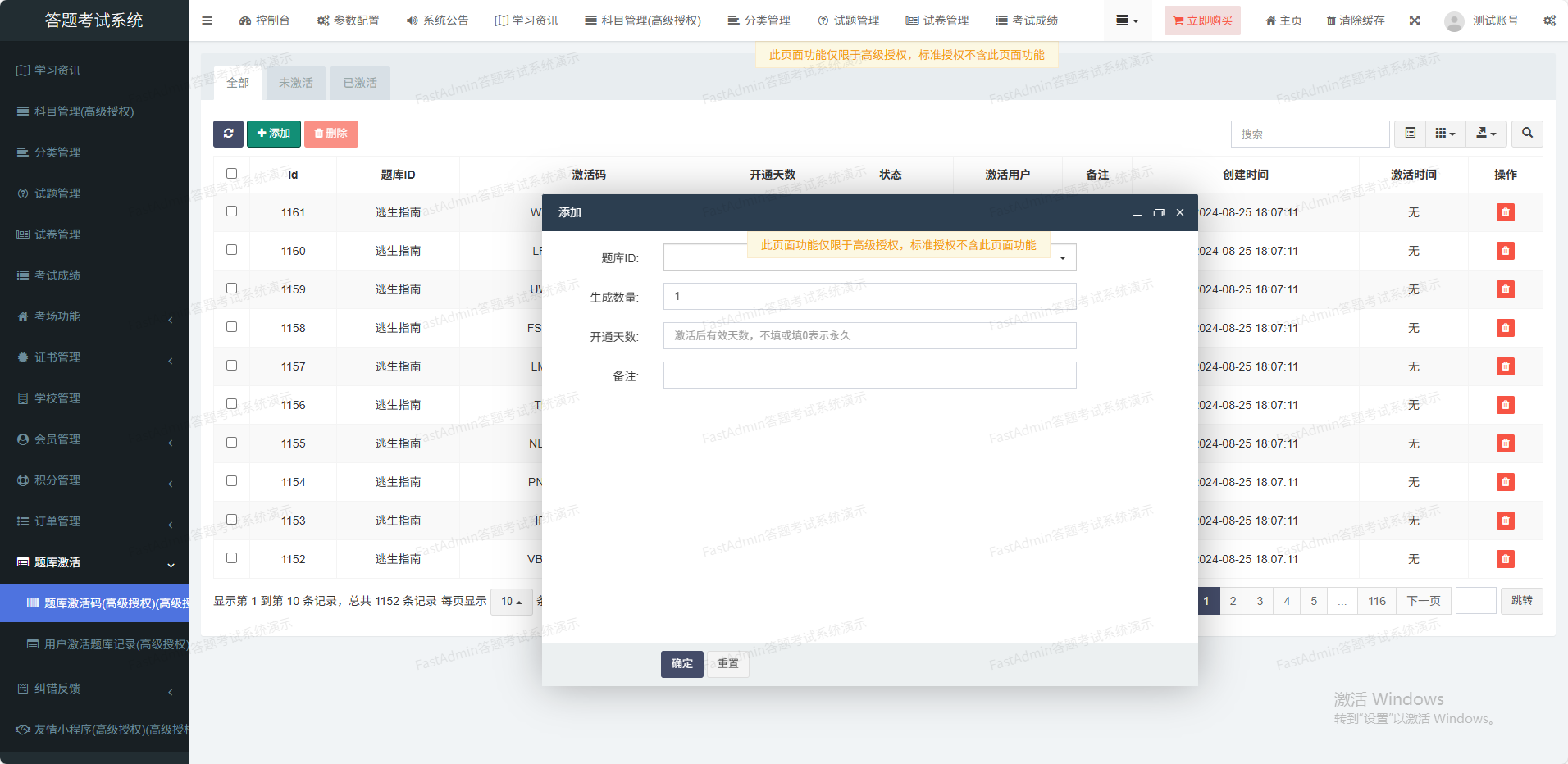 支持试题Excel批量在线导入功能
