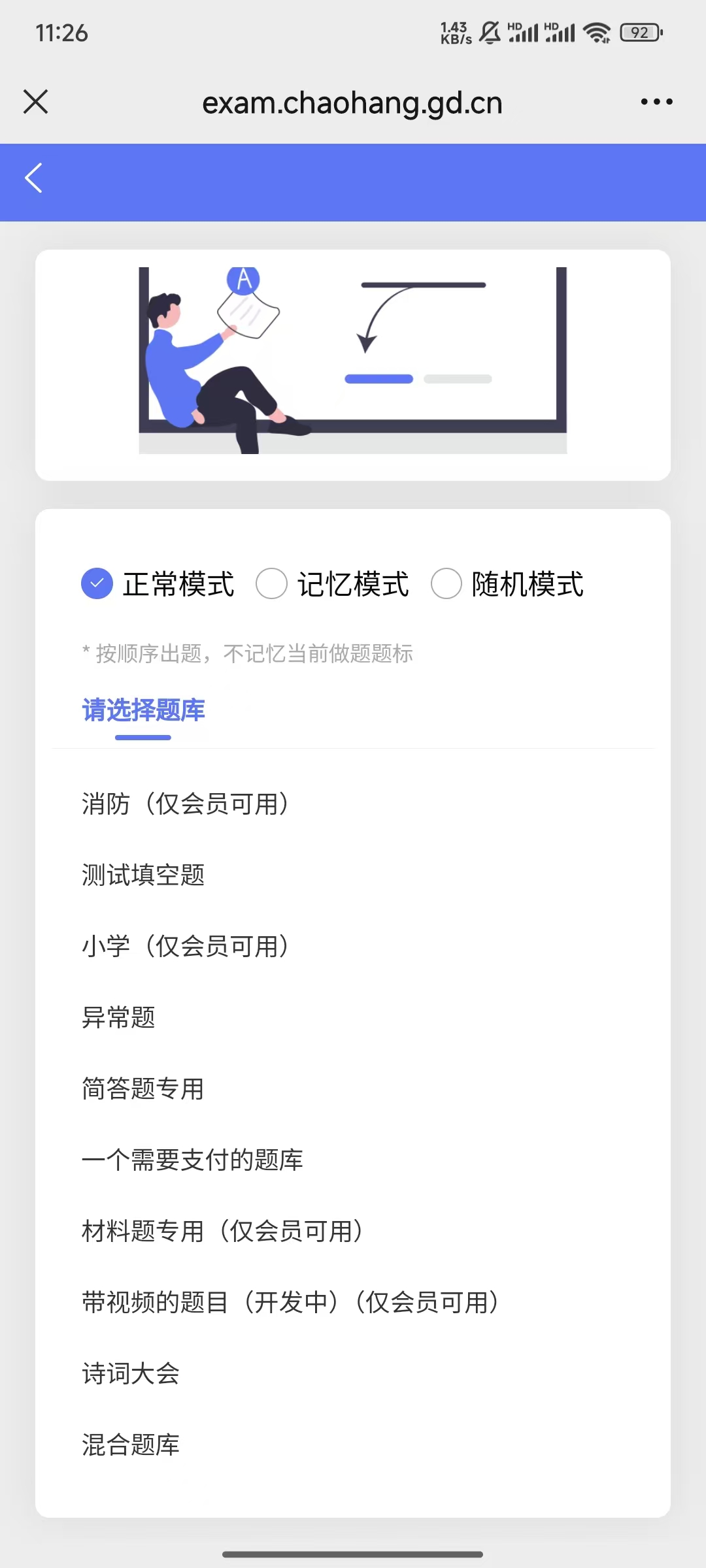 用户自由选择单一题库(延迟加载题目),无限练习