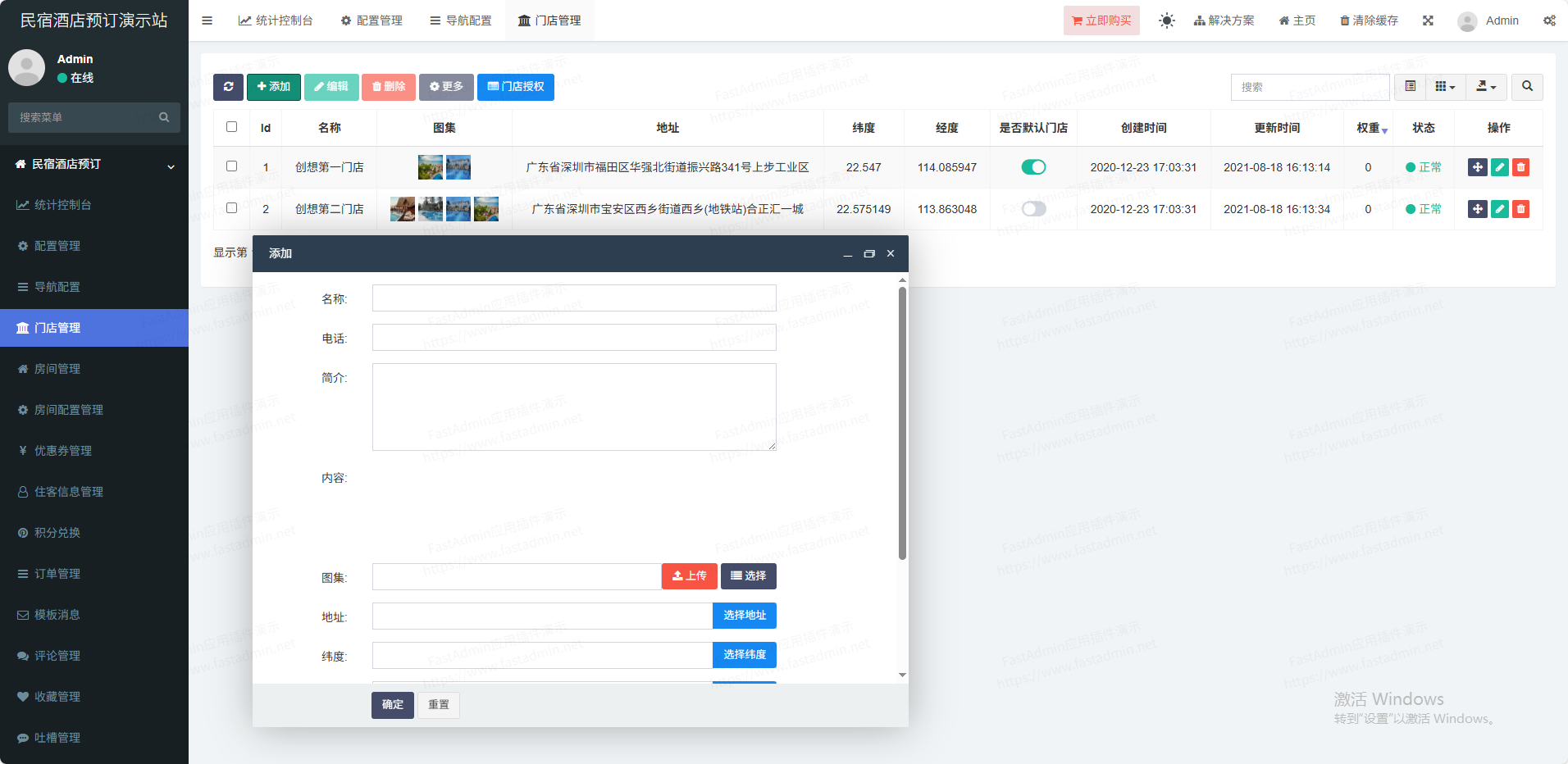 支持配置多门店和单门店配置,支持自动获取最近门店,支持按门店搜索房间状态