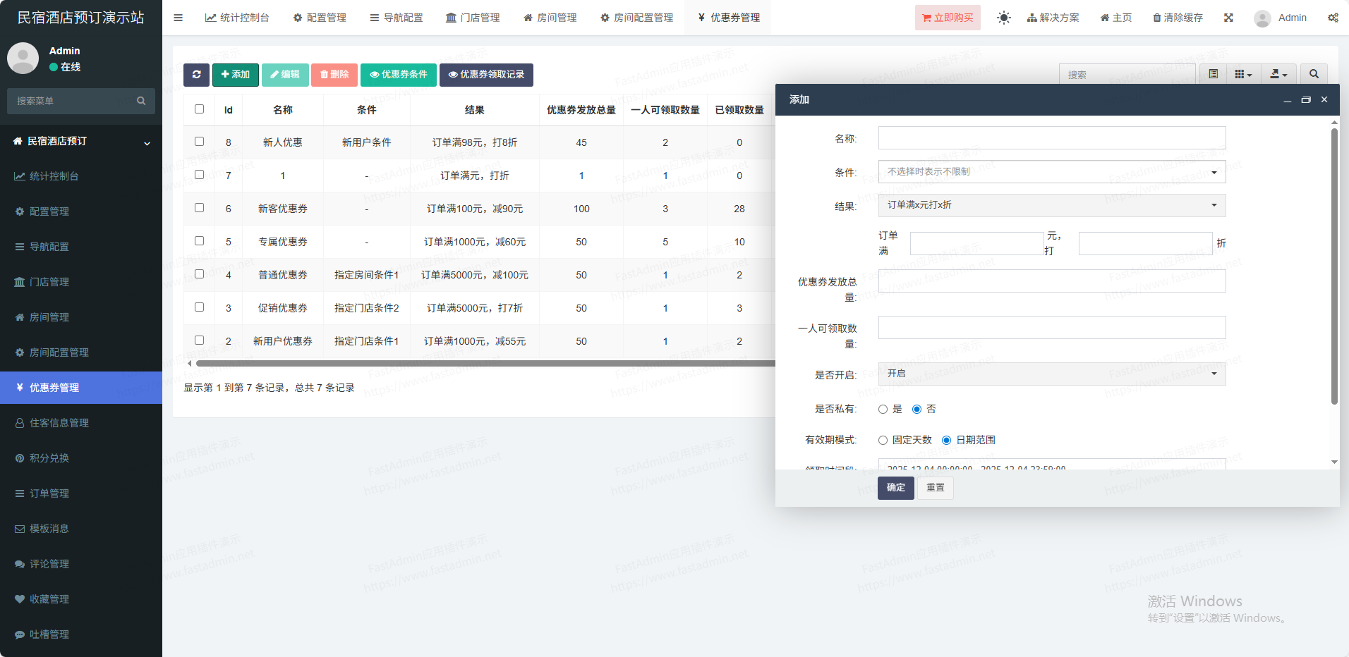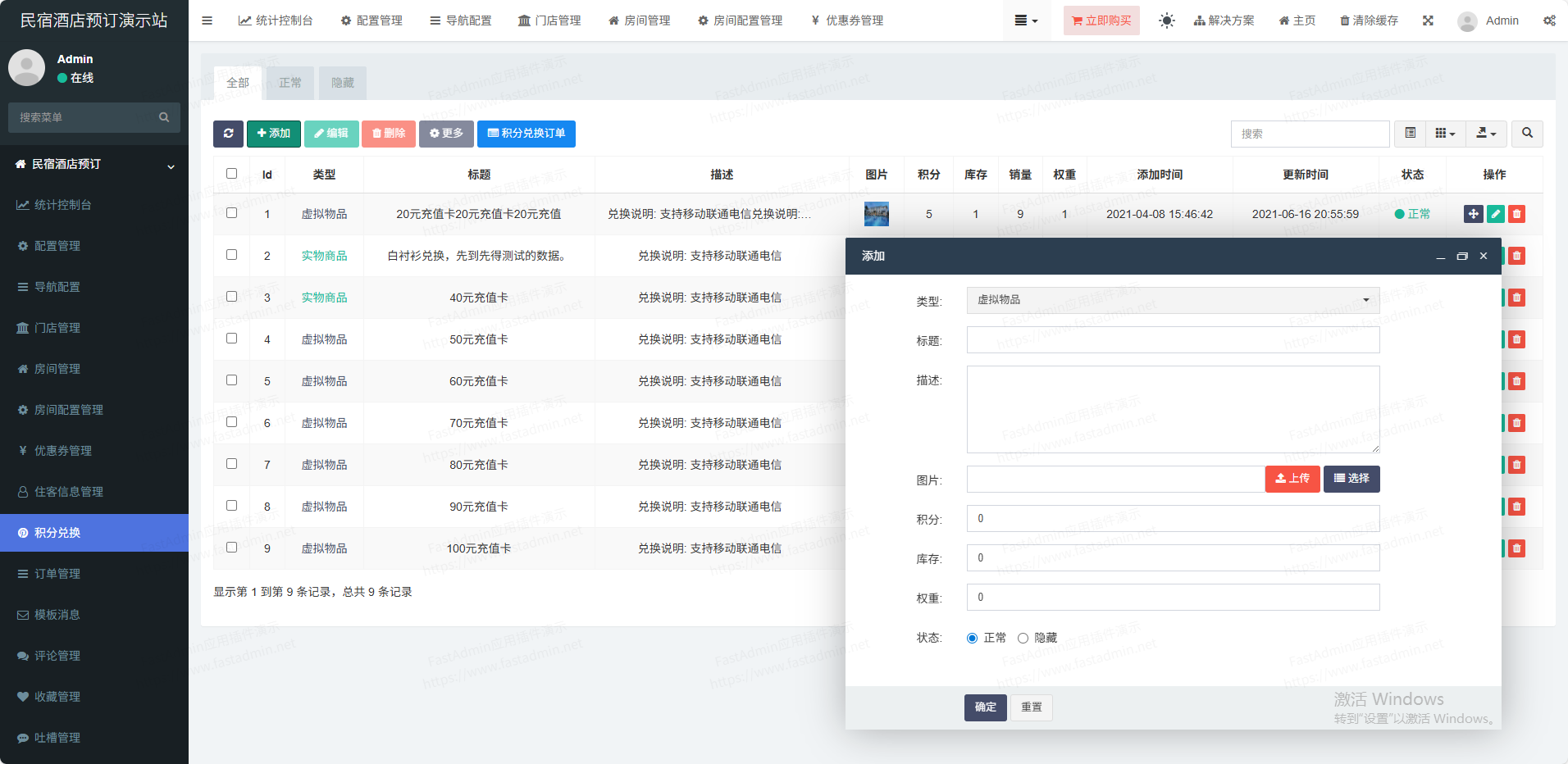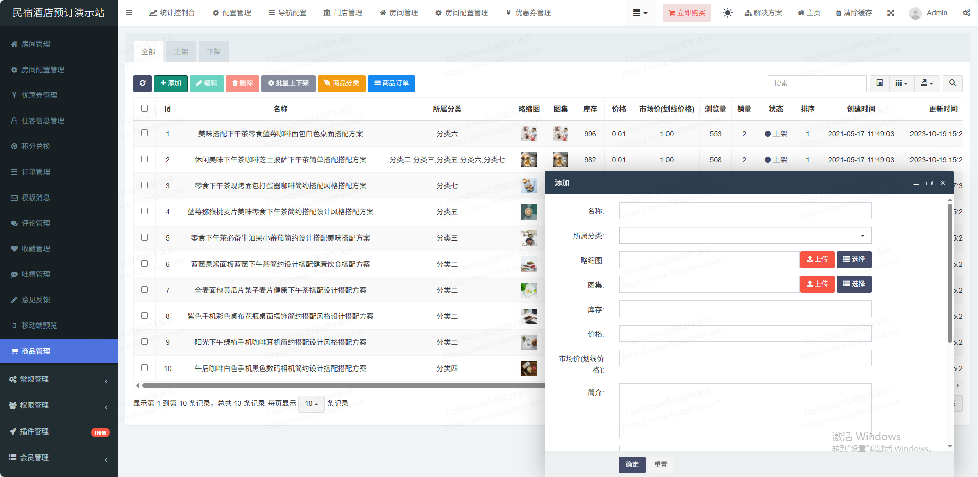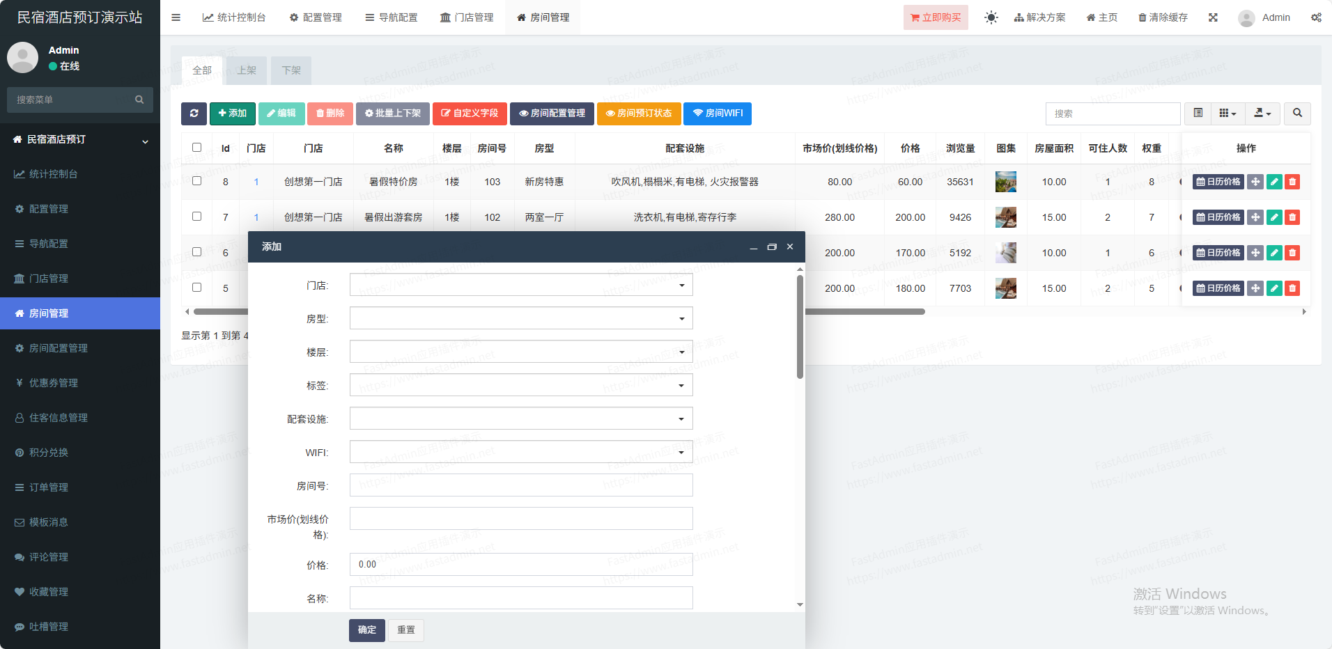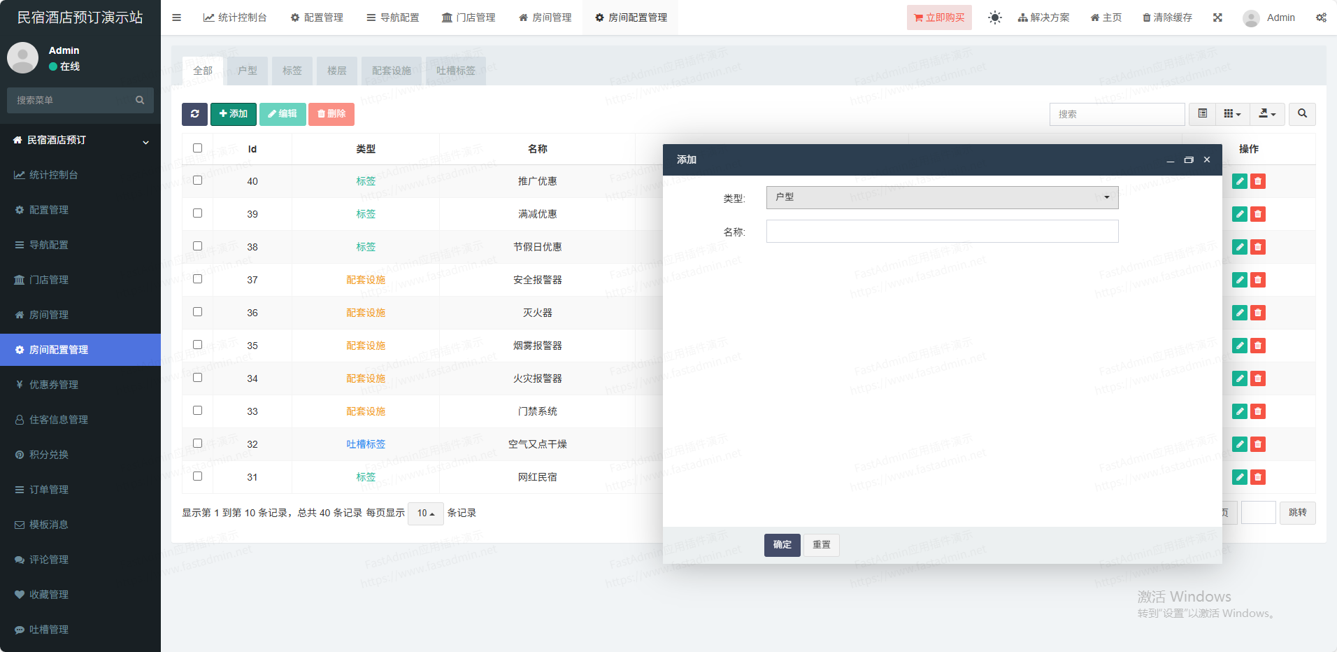 支持房间配套信息管理,支持自定义房间配置信息,内置房型、房型配置