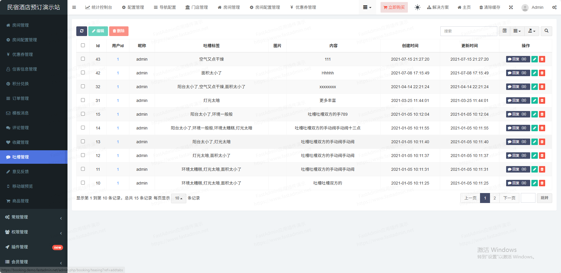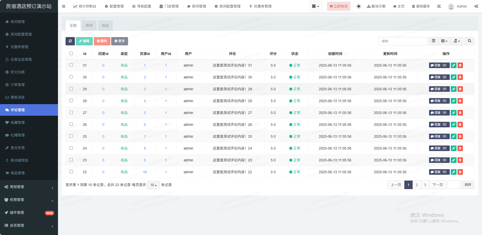 支持已入住用户对房间进行评论、打分,更直观的了解房间需改进的地方
