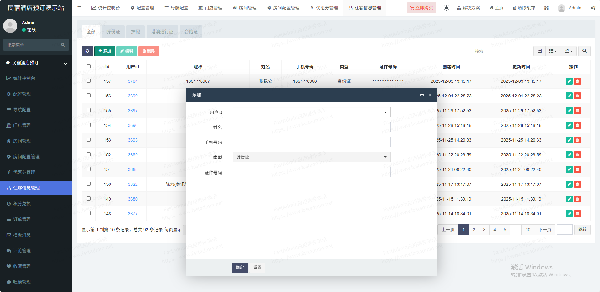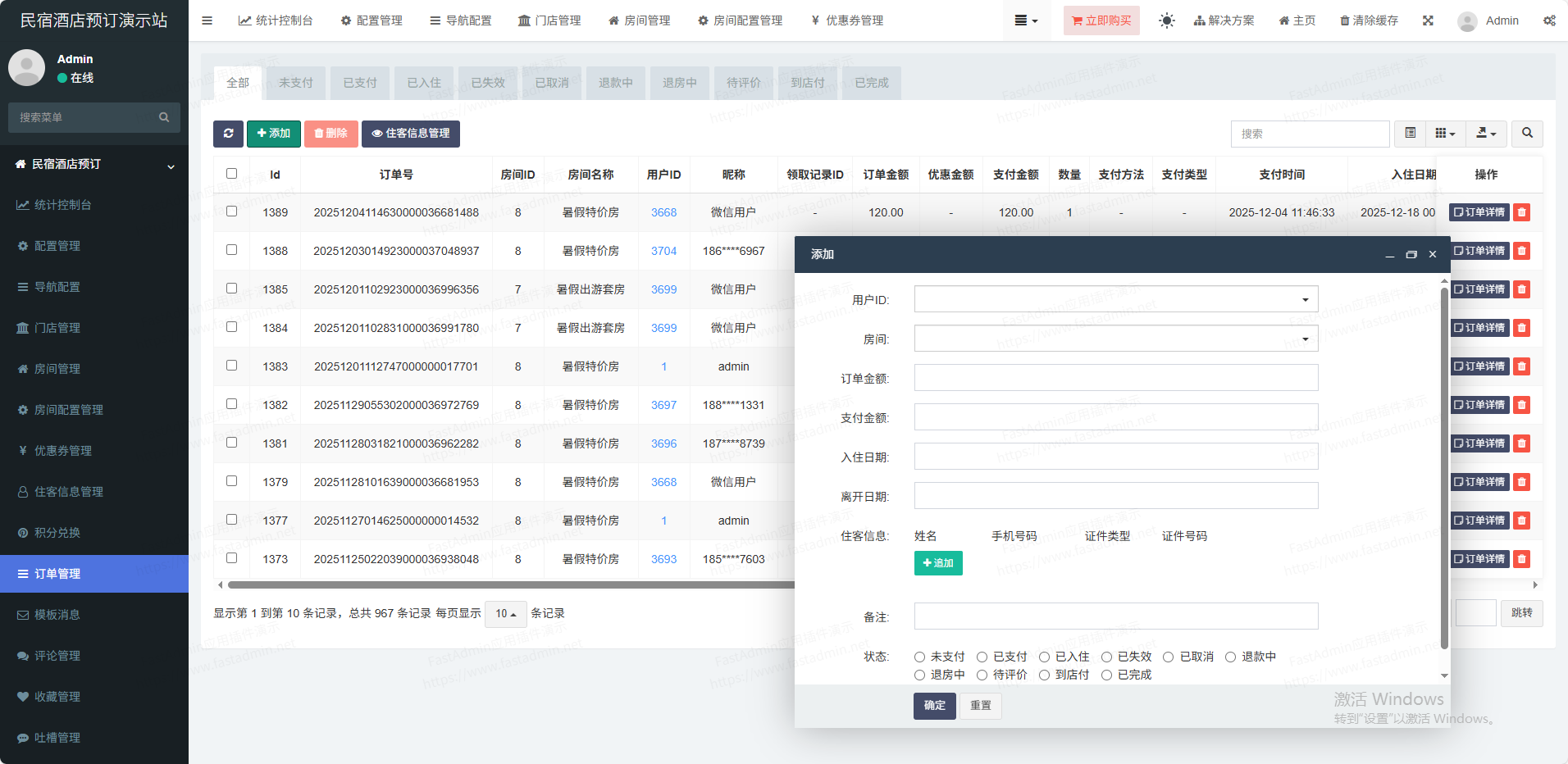 支持后台录入到店付订单信息,为电话预订客户锁定房间更便捷
