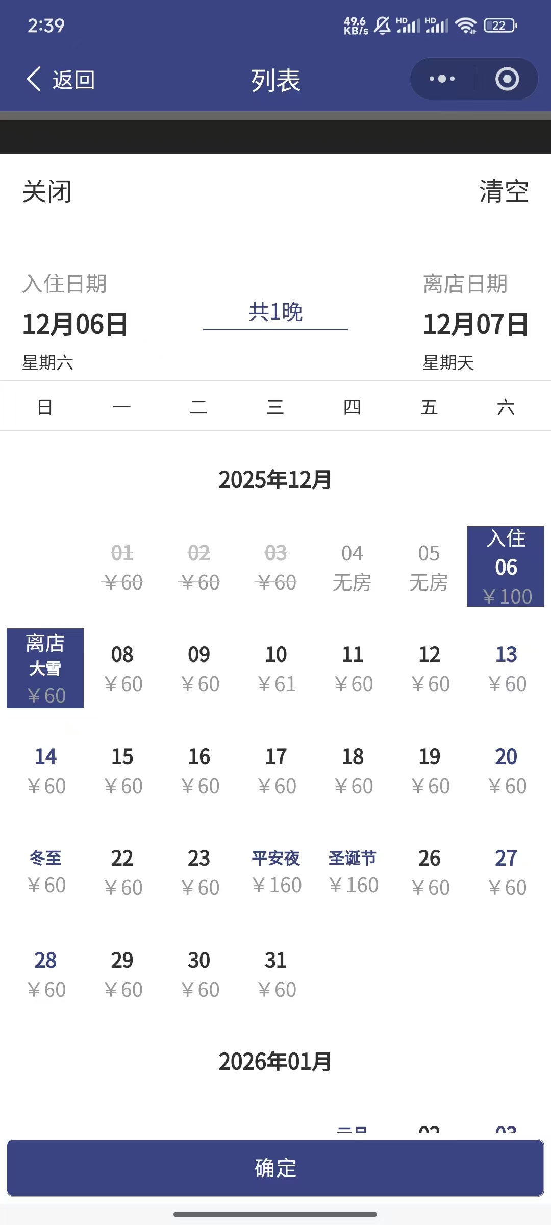 支持按日期搜索房间状态,支持按日期区间搜索房间状态