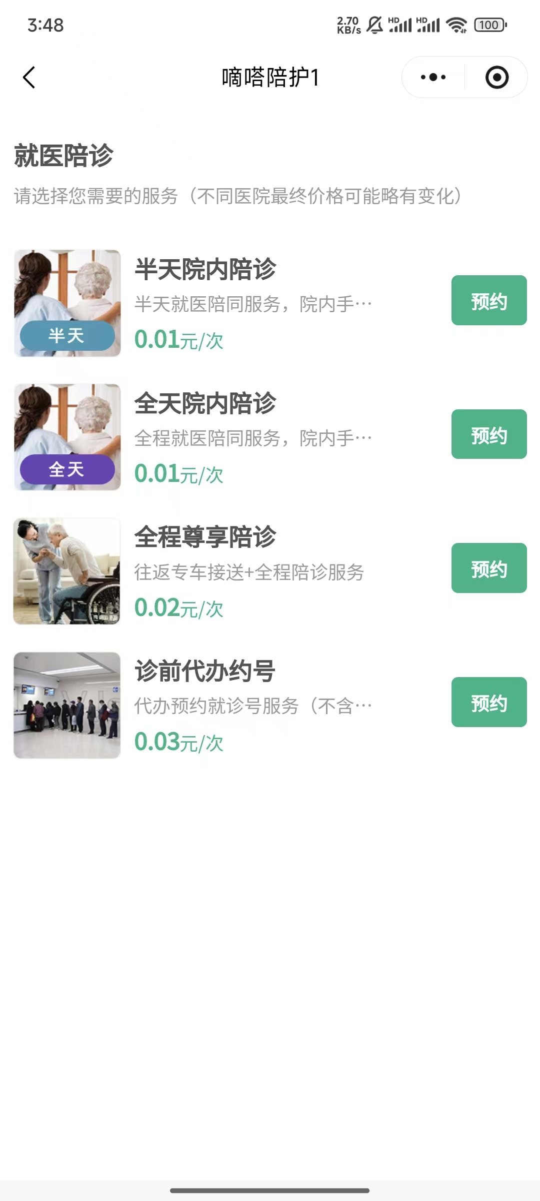 后台可自定义服务项目,服务类型涵盖上门、到院、跑腿、代办等多种类型,完全满足各种场景,向客户提供全方位服务。