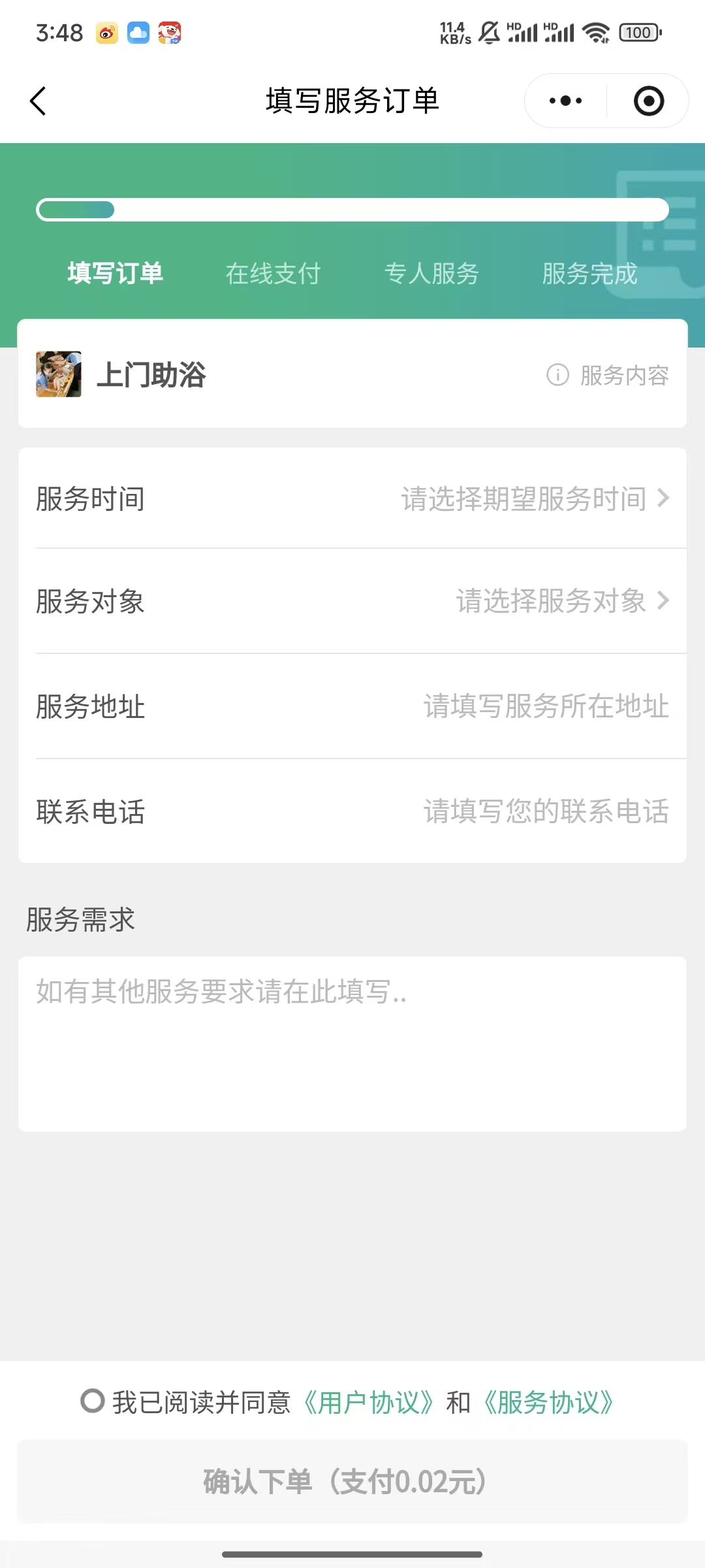 下单流程简单,针对不同类型服务只需填写相应必要的信息即可快速下单,陪护师接单后与客户电话沟通安排服务。