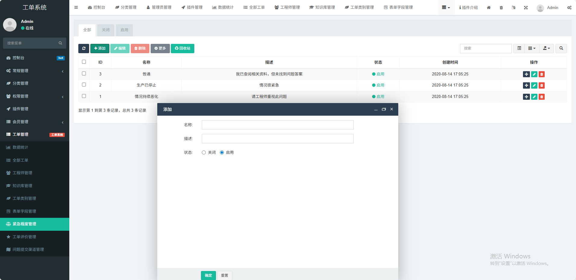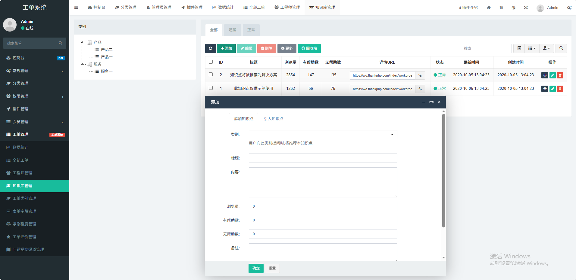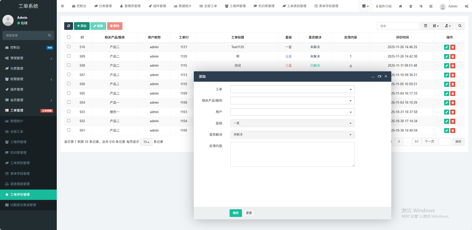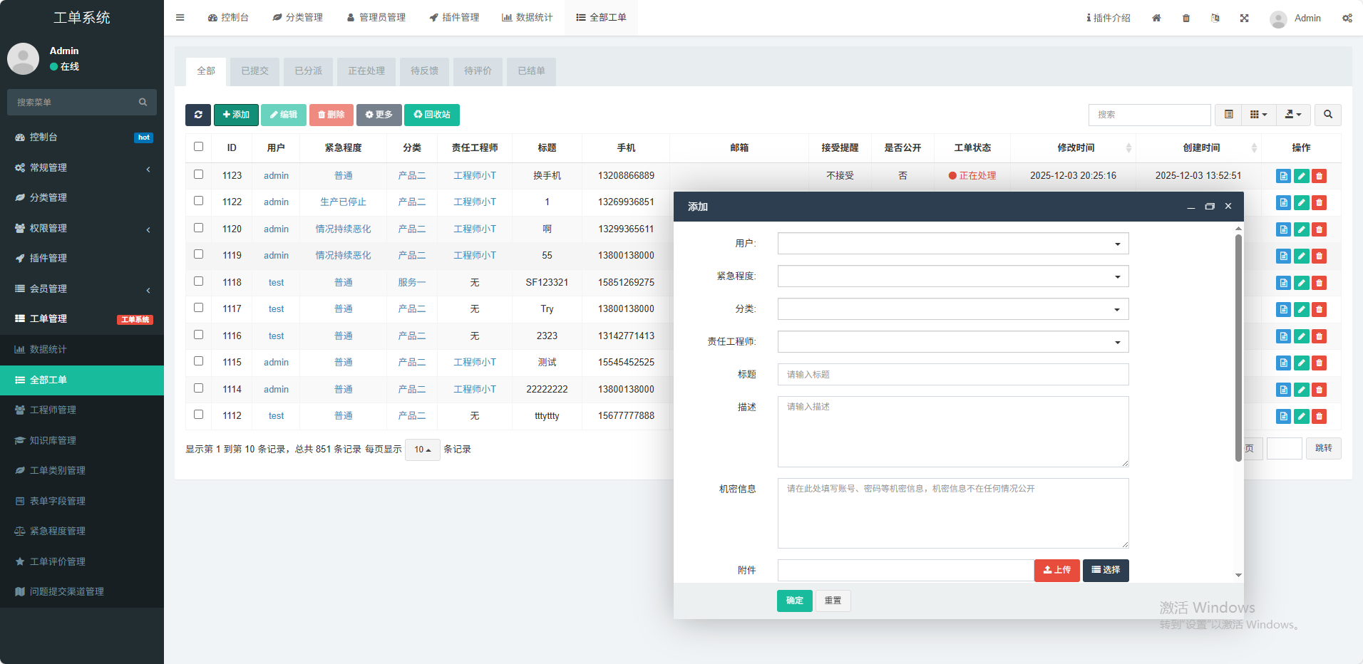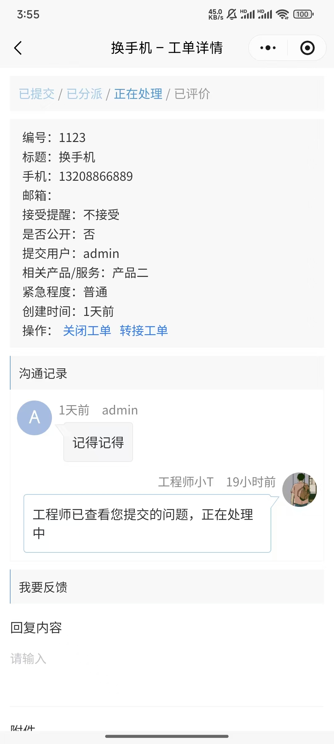 (1)自定义字段支持自定义各个表单的字段,并支持机密信息功能(2)知识库支持针对不同产品或服务创建不同的知识库,并支持外部引入知识点(3)工程师分配支持按循环、按技能、负载三种分配方式分配工程师(4)高响应支持邮件和短信通知工程师和工单发起人(5)工单渠道支持自由创建多种工单渠道,支持对接人工在线客服系统(6)紧急程度支持定义工单紧急程度、更好了解用户的状态(7)自动关闭支持设定工单超时时长,到点自动关闭用户提交的工单(8)工单催办支持工单催办、支持设定催办的间隔时长