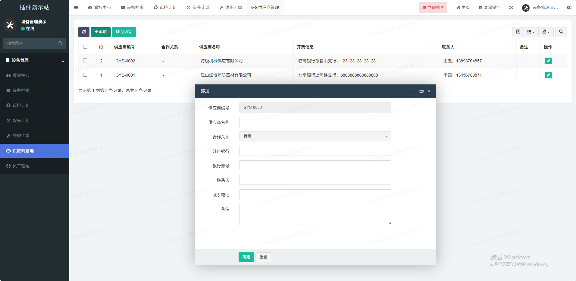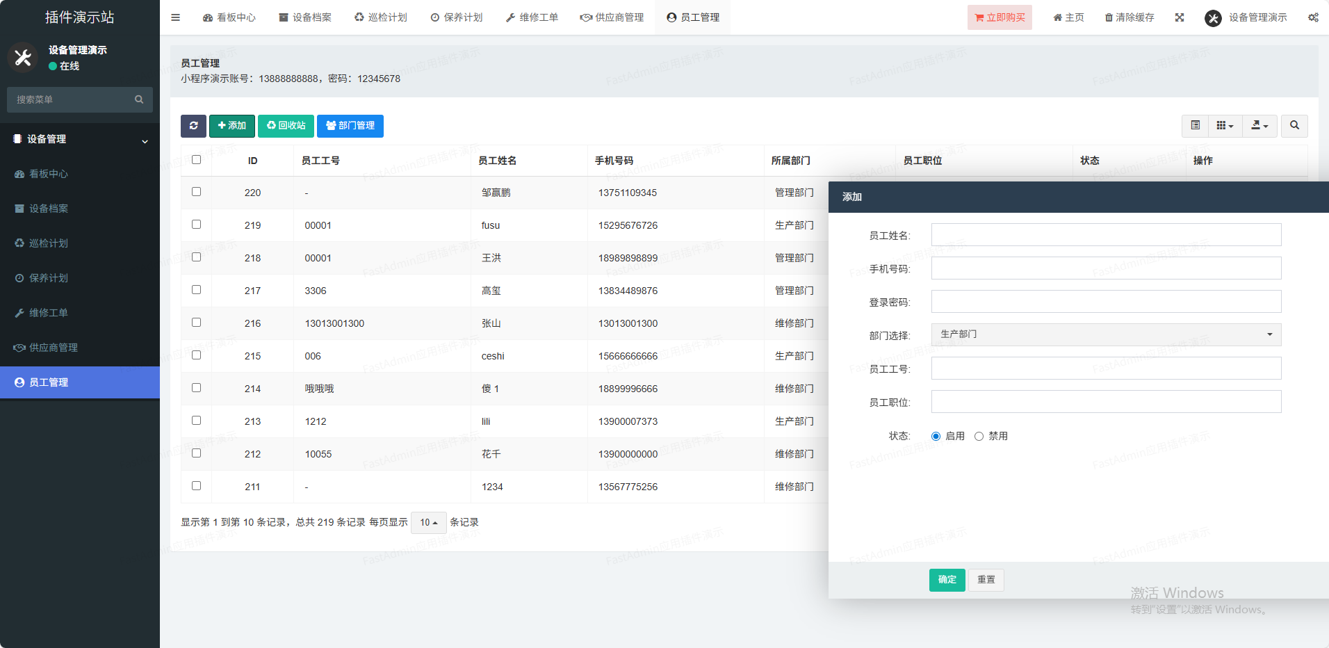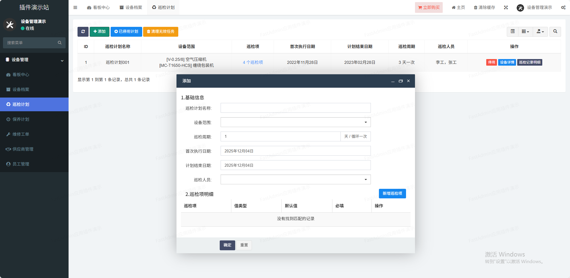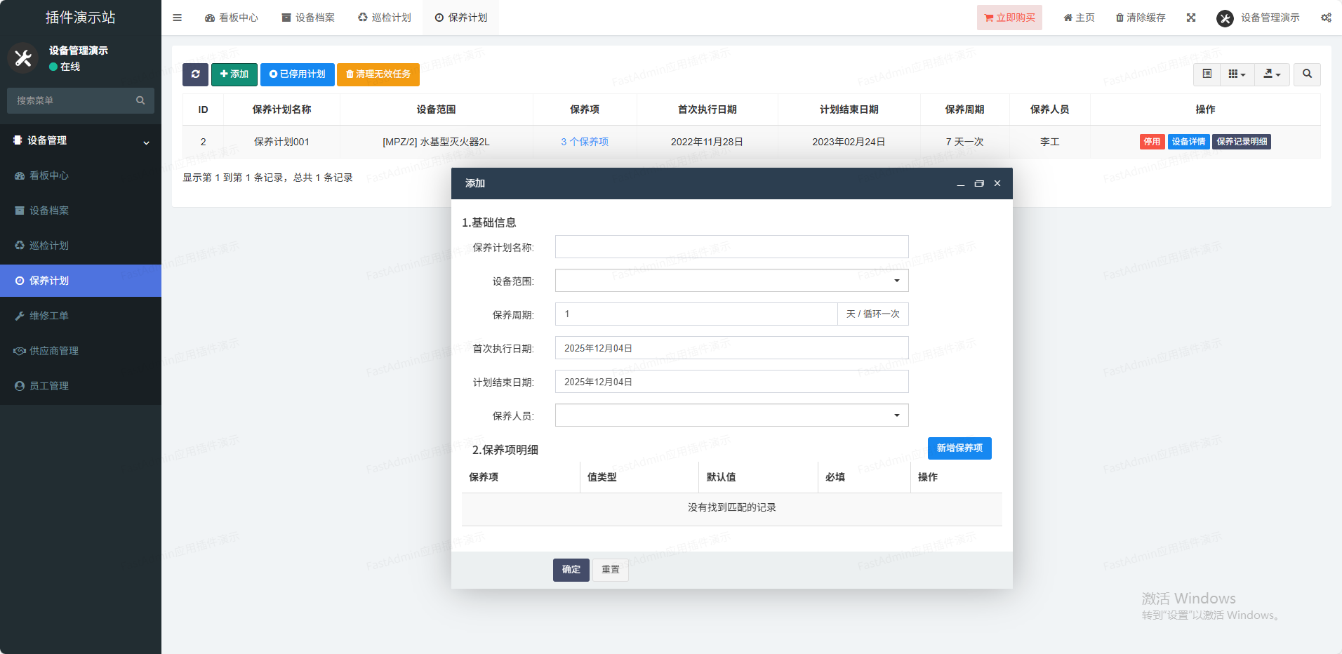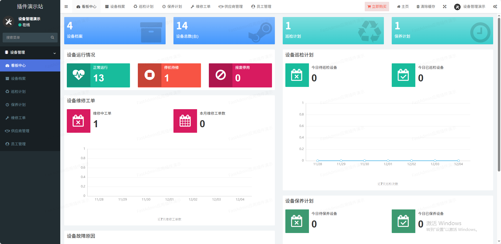 (1)一物一码每个设备都有专属二维码,设备信息扫码即得(2)设备标签自定义打印标签样式提供设备标签数据导出,(3)设备档案以档案为维度精益化管理多类型设备(4)设备维修现场无纸化工单提交,随时提交随时响应(5)巡检计划支持自定义巡检项,多种字段类型选择配置(6)保养计划支持自定义保养项,多种字段类型选择配置(7)设备记录支持查看设备全生命周期内操作日志,从源头追湖问题(8)员工管理支持按部门分配设备管理权限,员工管理设备更方便(9)工作台支持查看所负责管理的设备状态及进度(10)批量导入支持批量导入初期设备数据(11)响应式PC端响应式布局,手机、平板、PC端界面自适应匹配