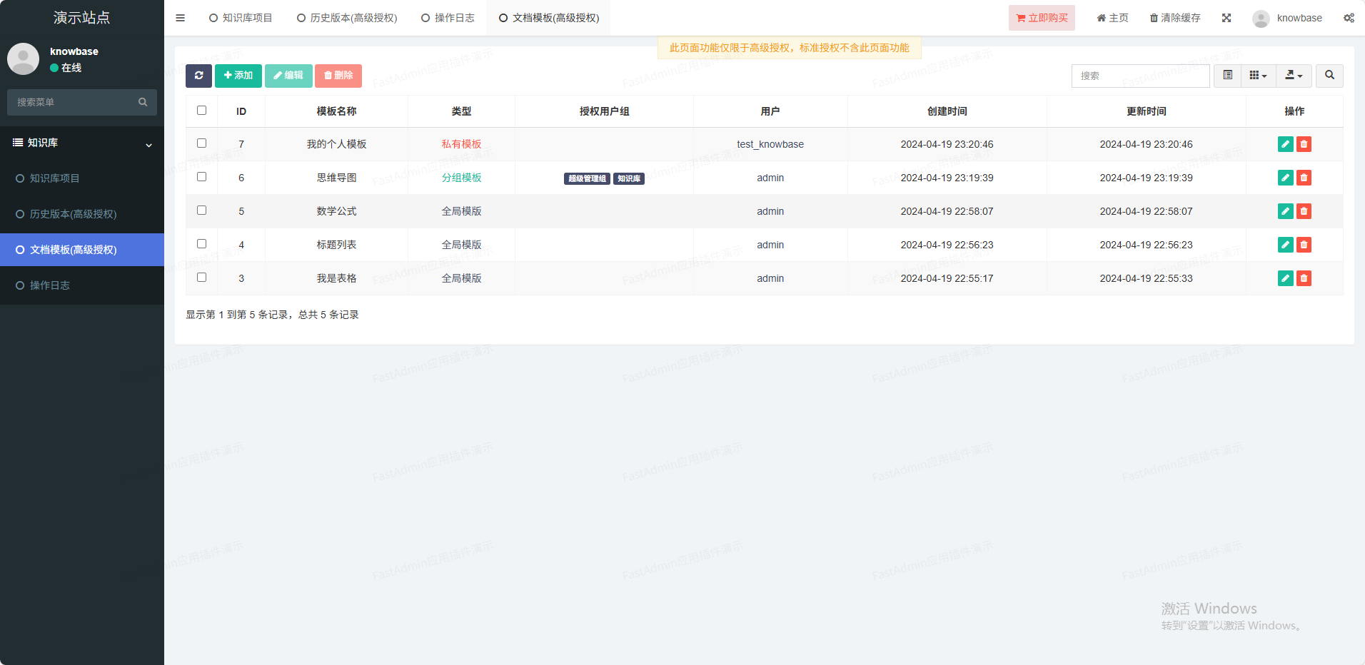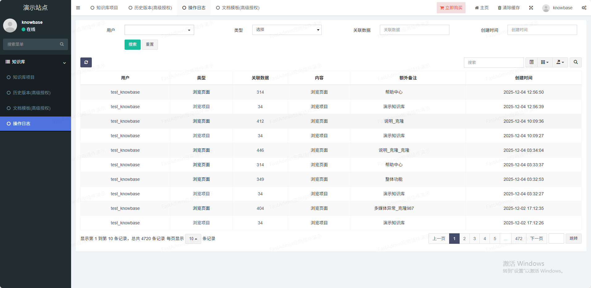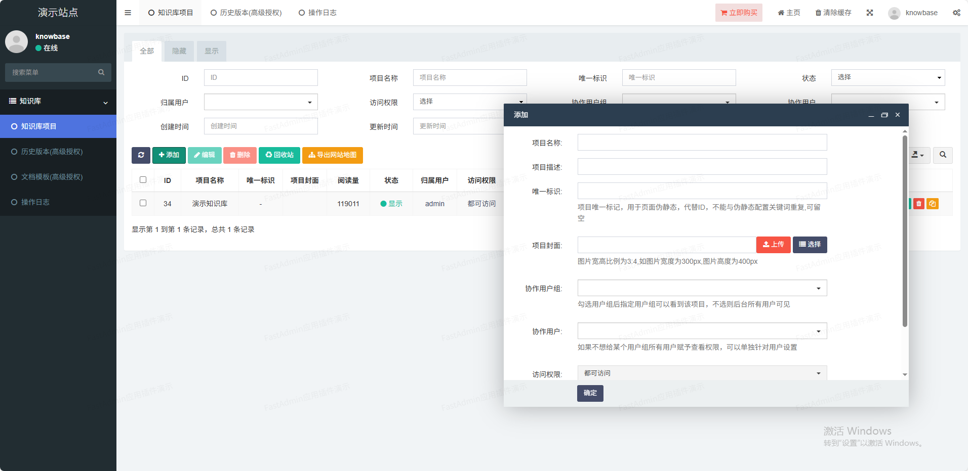 前台阅读权限设置、后台协作权限设置、操作日志记录