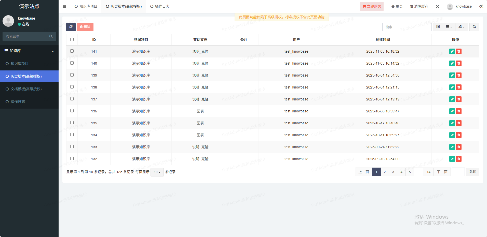 记录历史版本,支持与上一版本和最新版本比对,方便恢复改动的内容