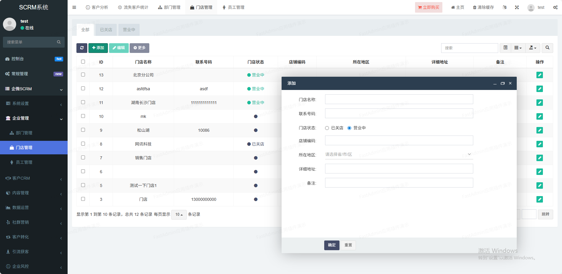 员工划分不同门店,打通线上线下数据,针对不同门店定制不同营销情况