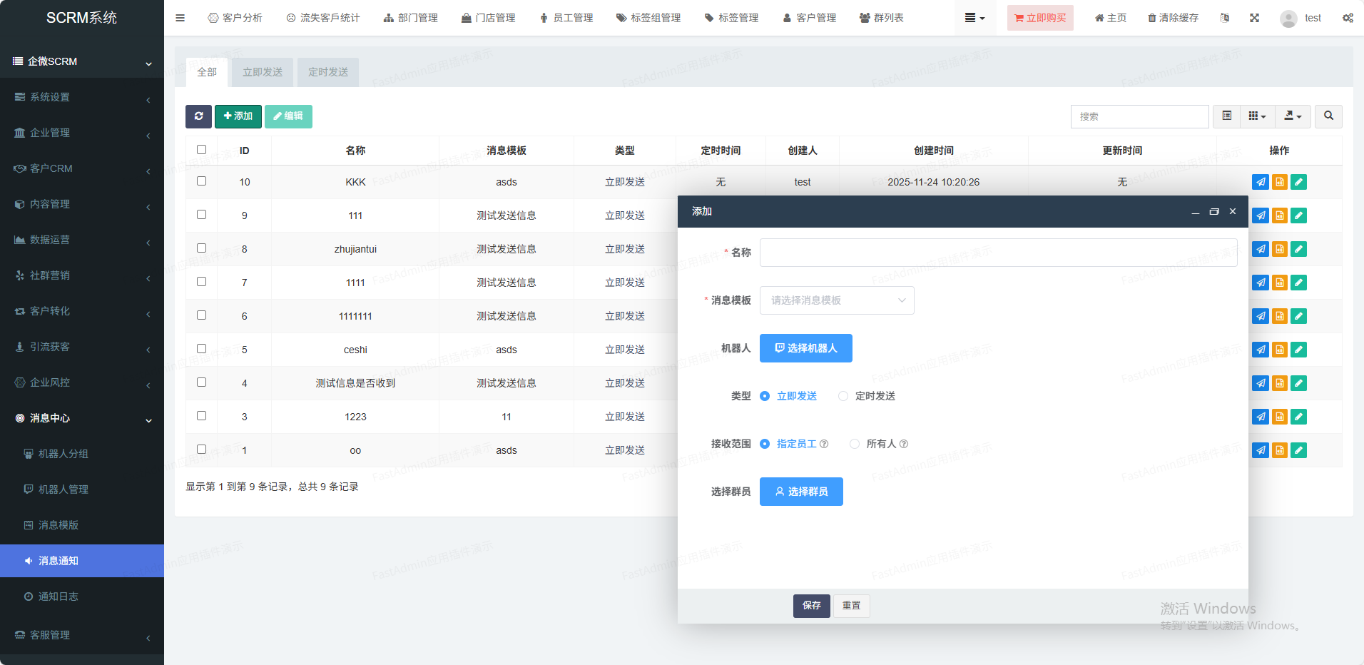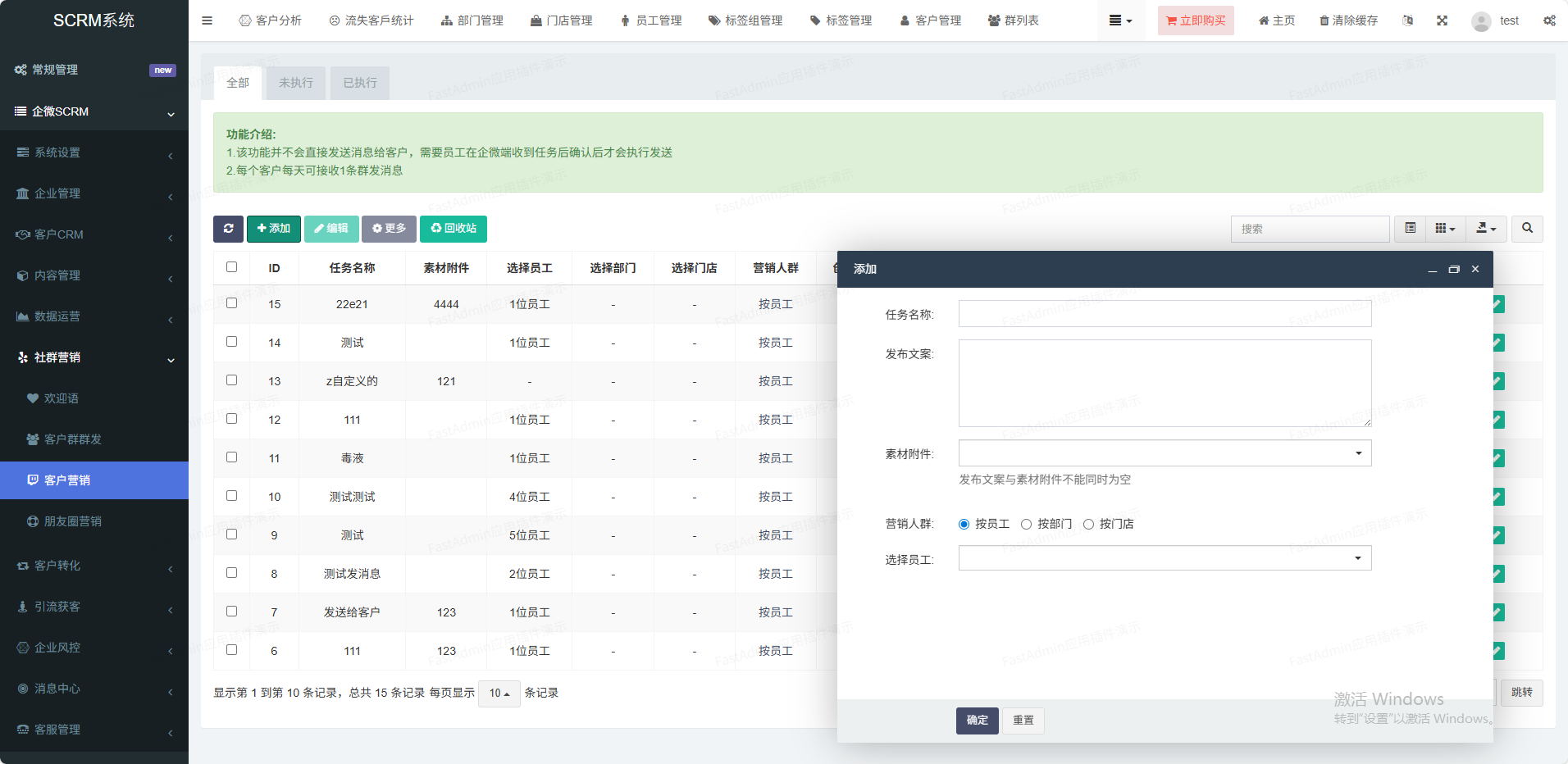 后台设置群发任务及执行员工,一键群发至客户个微和群聊