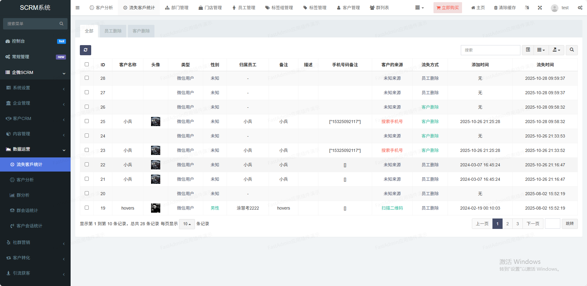 多维度分析群、客户、会话(回复时效等),流失客户统计(流失时间、方式等)