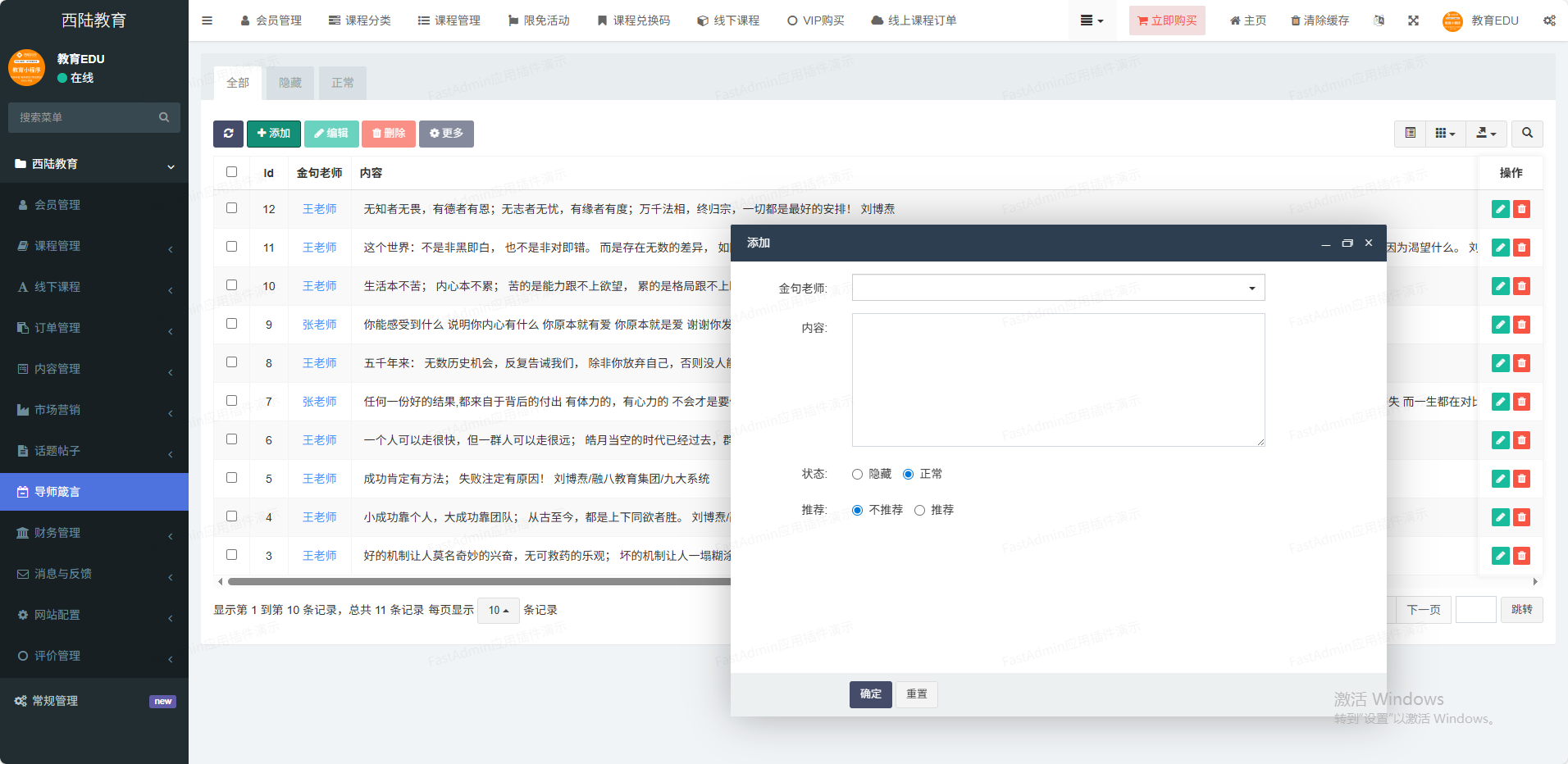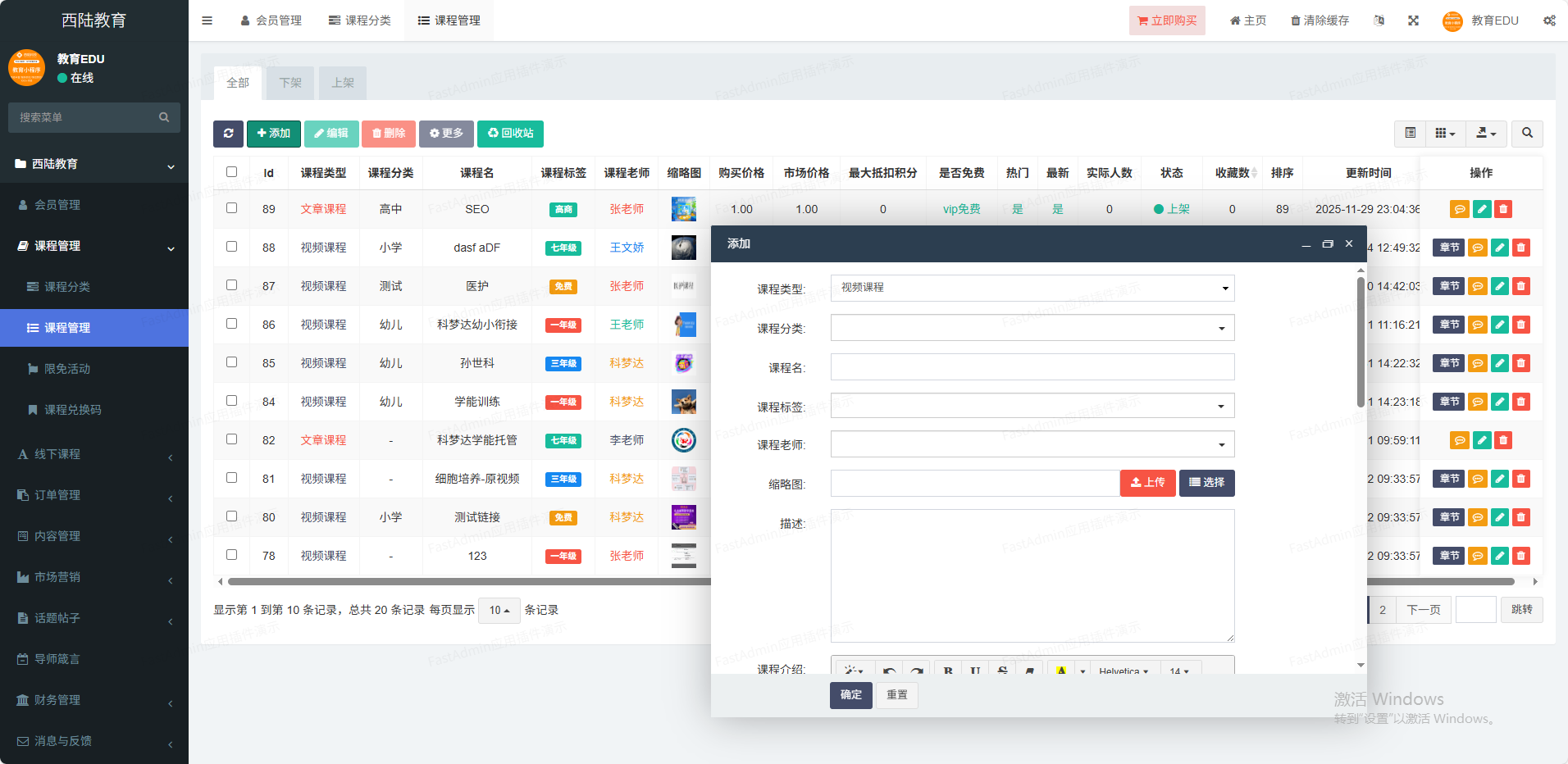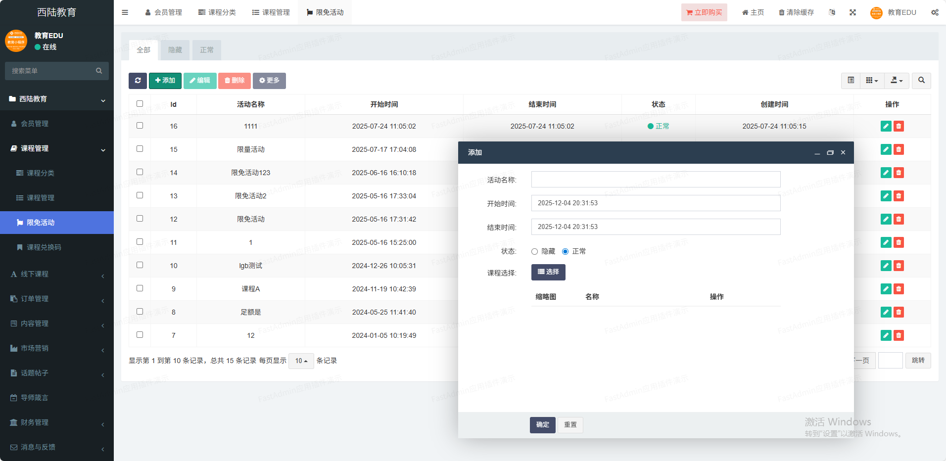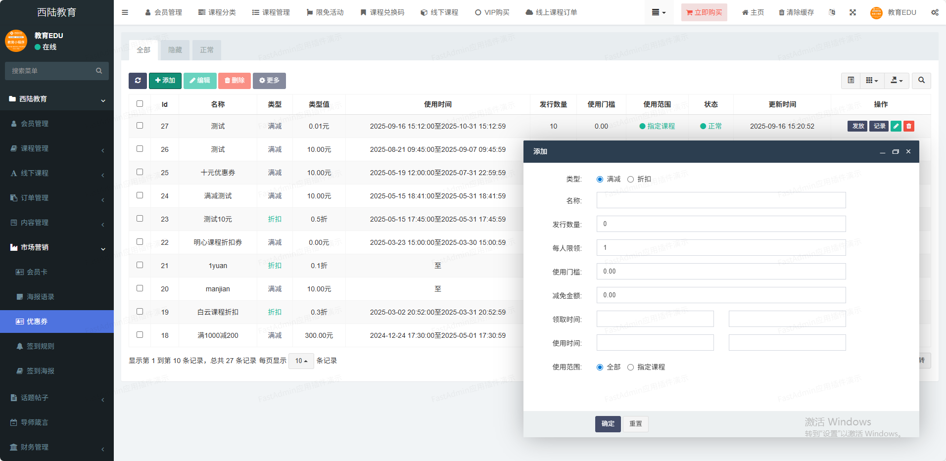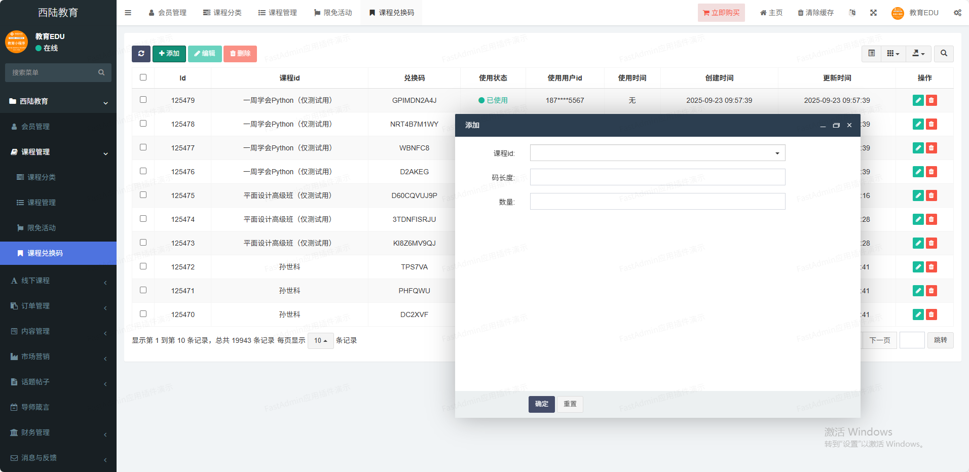 后台发放兑换券,用户输入兑换券后可以直接兑换课程