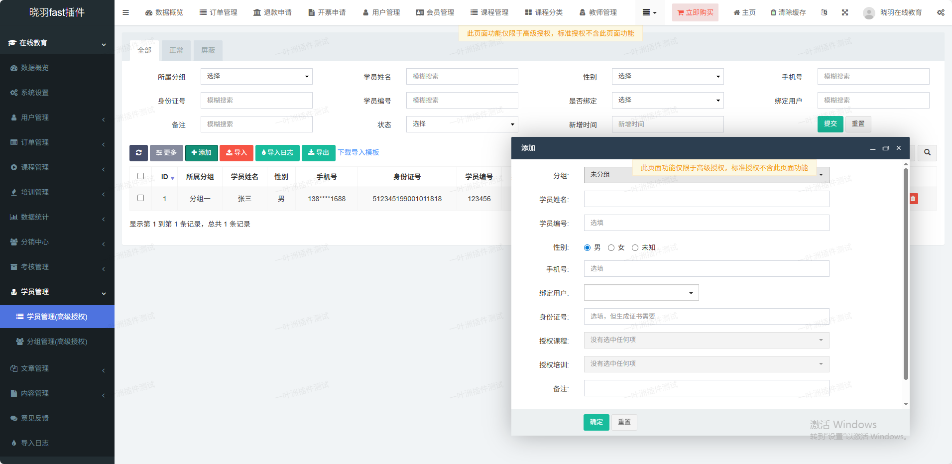 支持机构学员导入,然后学员可以通过手机号进行登录学习