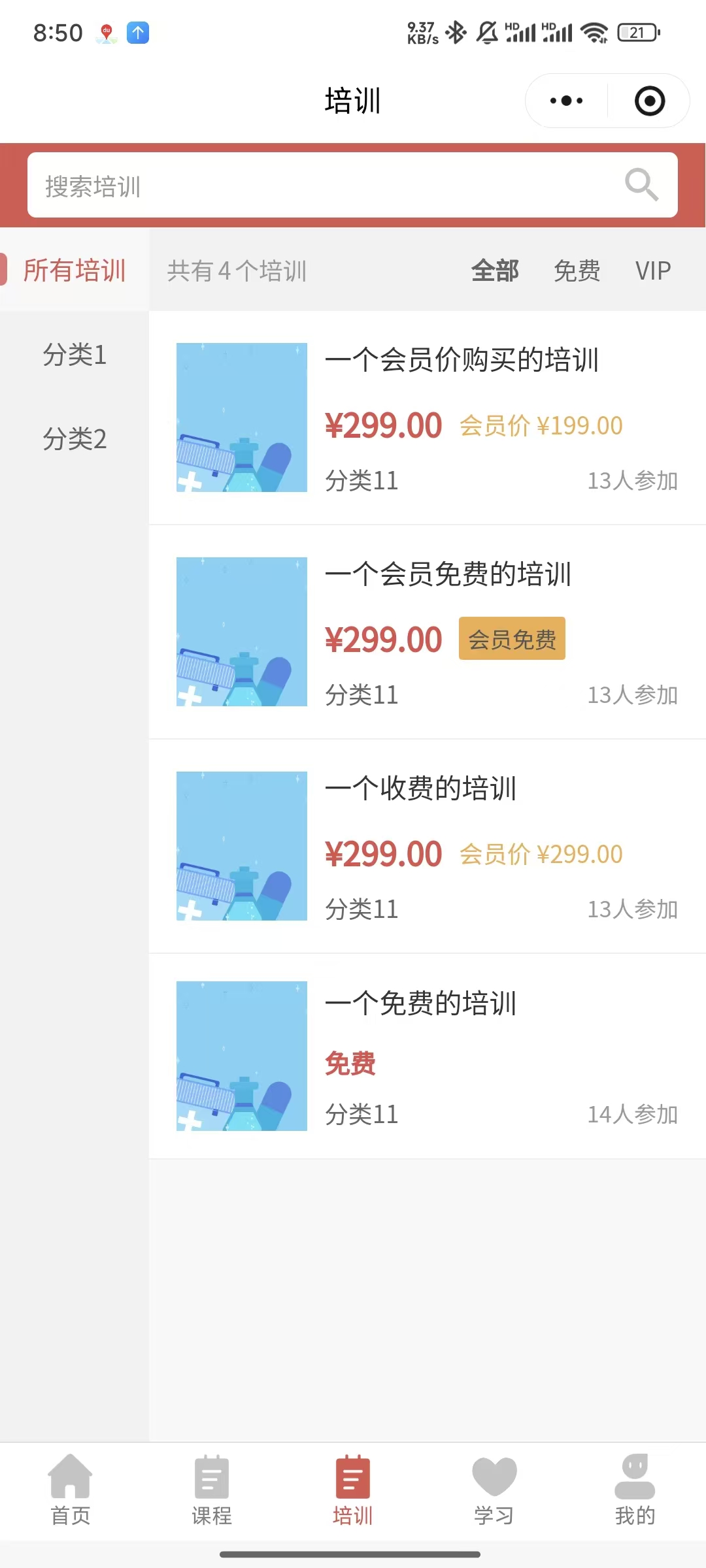 课程或培训都可以设置免费或者付费,并支持购物车模式