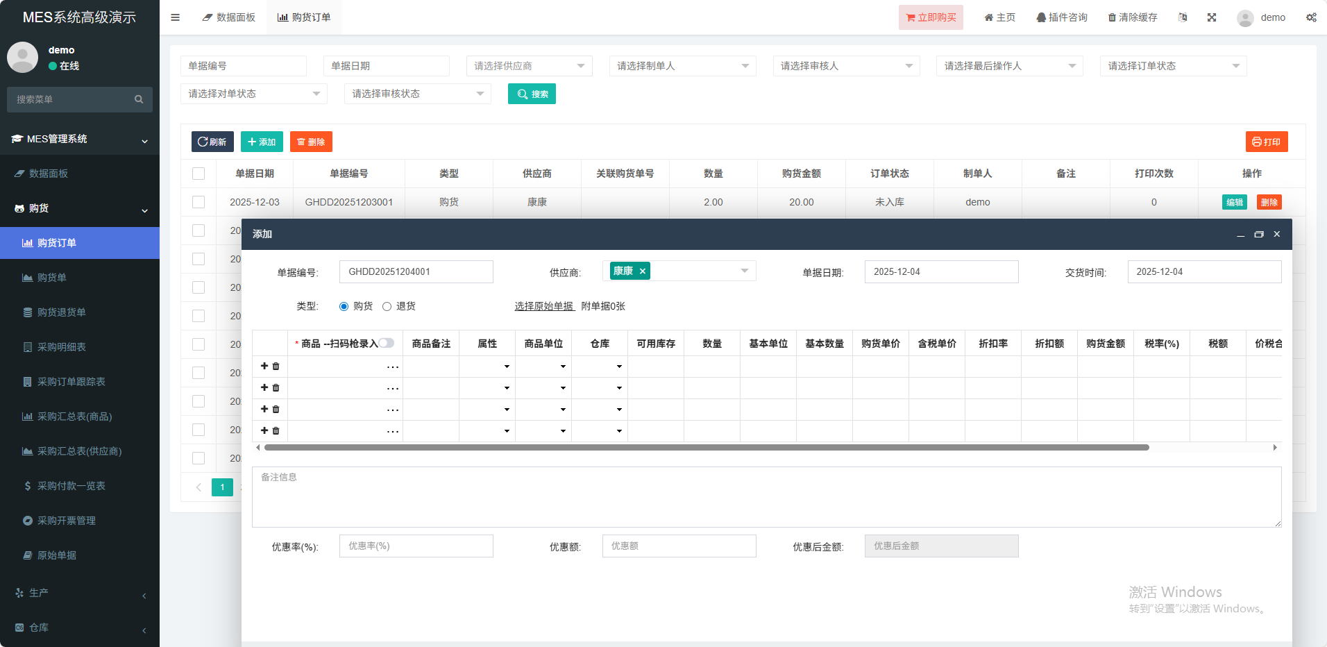 生成生产计划(也可以手动下达生产计划),可根据BOM表自动生成半