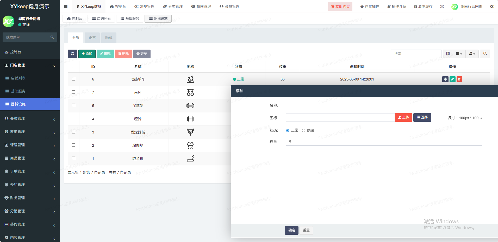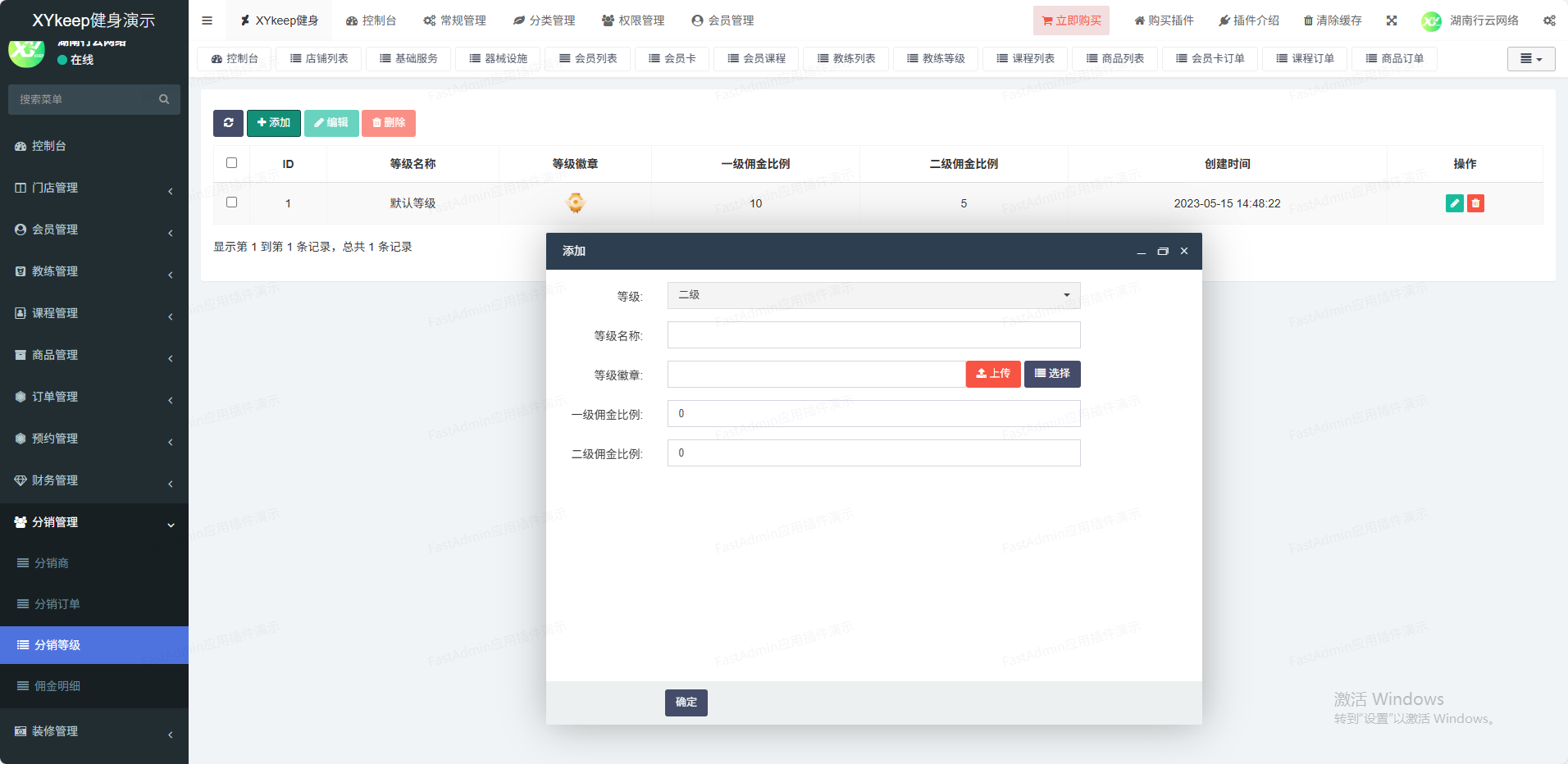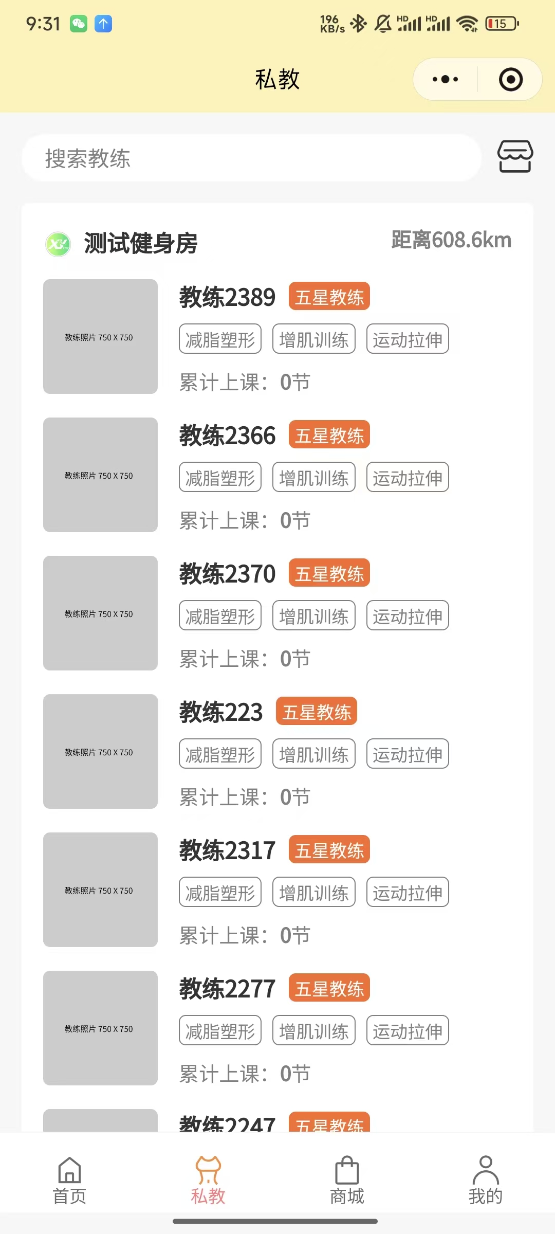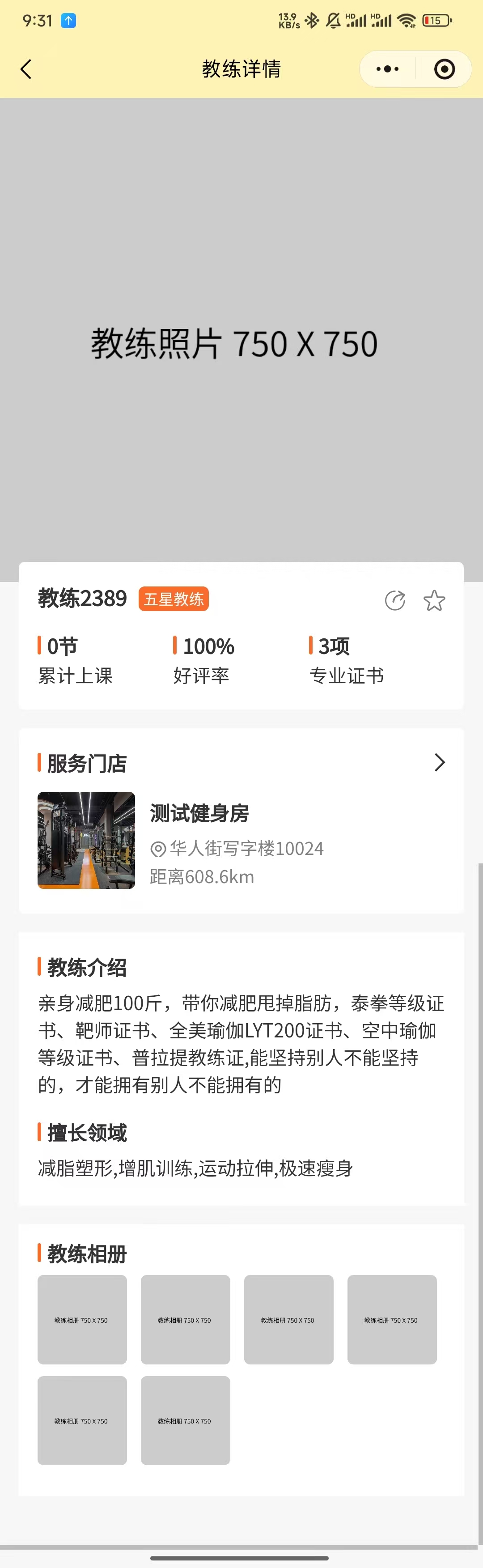 (1)装修模块可自定义小程序端首页、商城首页、用户中心排版,自定义整体色调。(2)门店模块可管理多个门店,门店均可售卖课程、办理会员卡。(3)会员卡模块用户可选择门店办理会员卡(4)教练模块教练可分等级设置课程佣金,可扫码核销预约课程。(5)课程模块可售卖私教课程,会员购买之后可预约上课。(6)商城模块可售卖健身周边产品、包含物流查询商品管理等功能。(7)订单模块包含会员卡、课程、商品订单。(8)预约模块会员可在小程序端预约门店和教练上课(9)财务模块后台可处理教练和分销商提现。(10)分销模块 二级分销、课程,会员卡,商品均可分销。