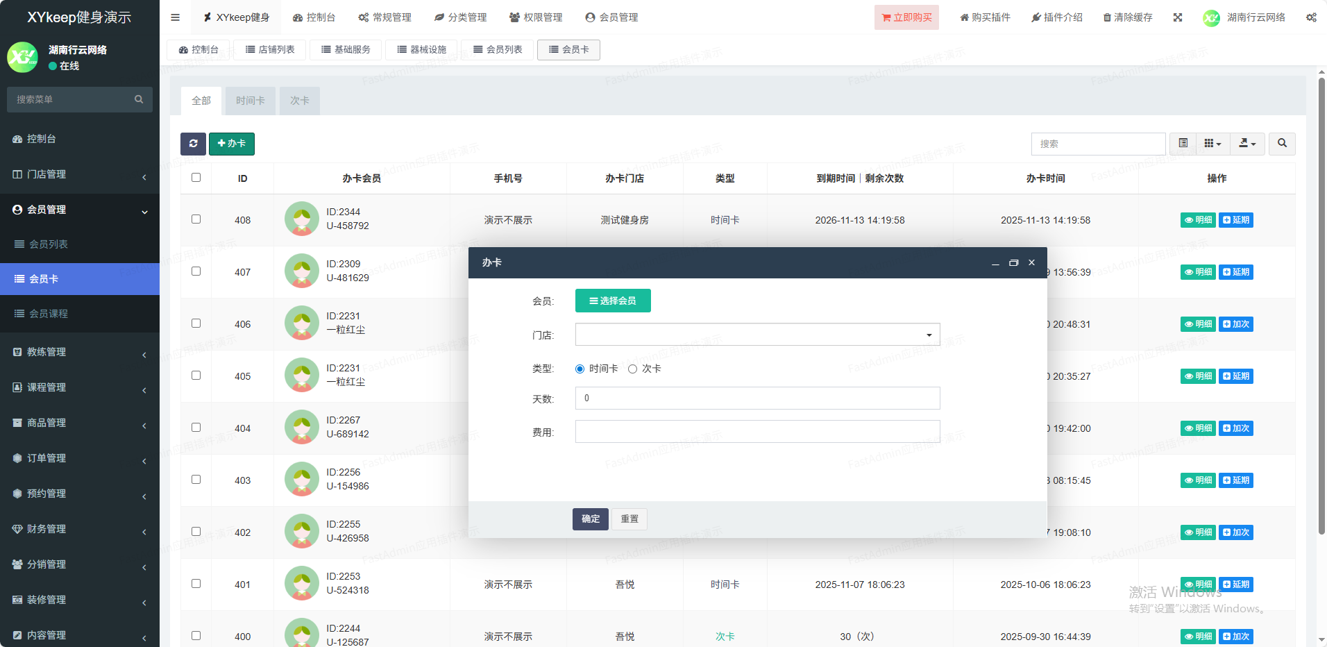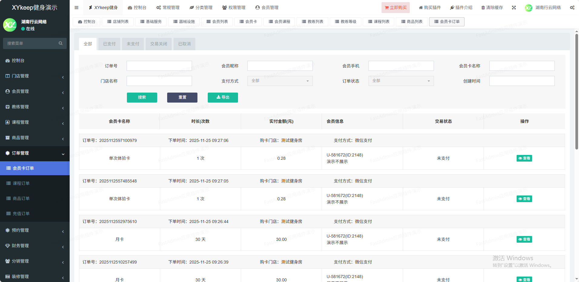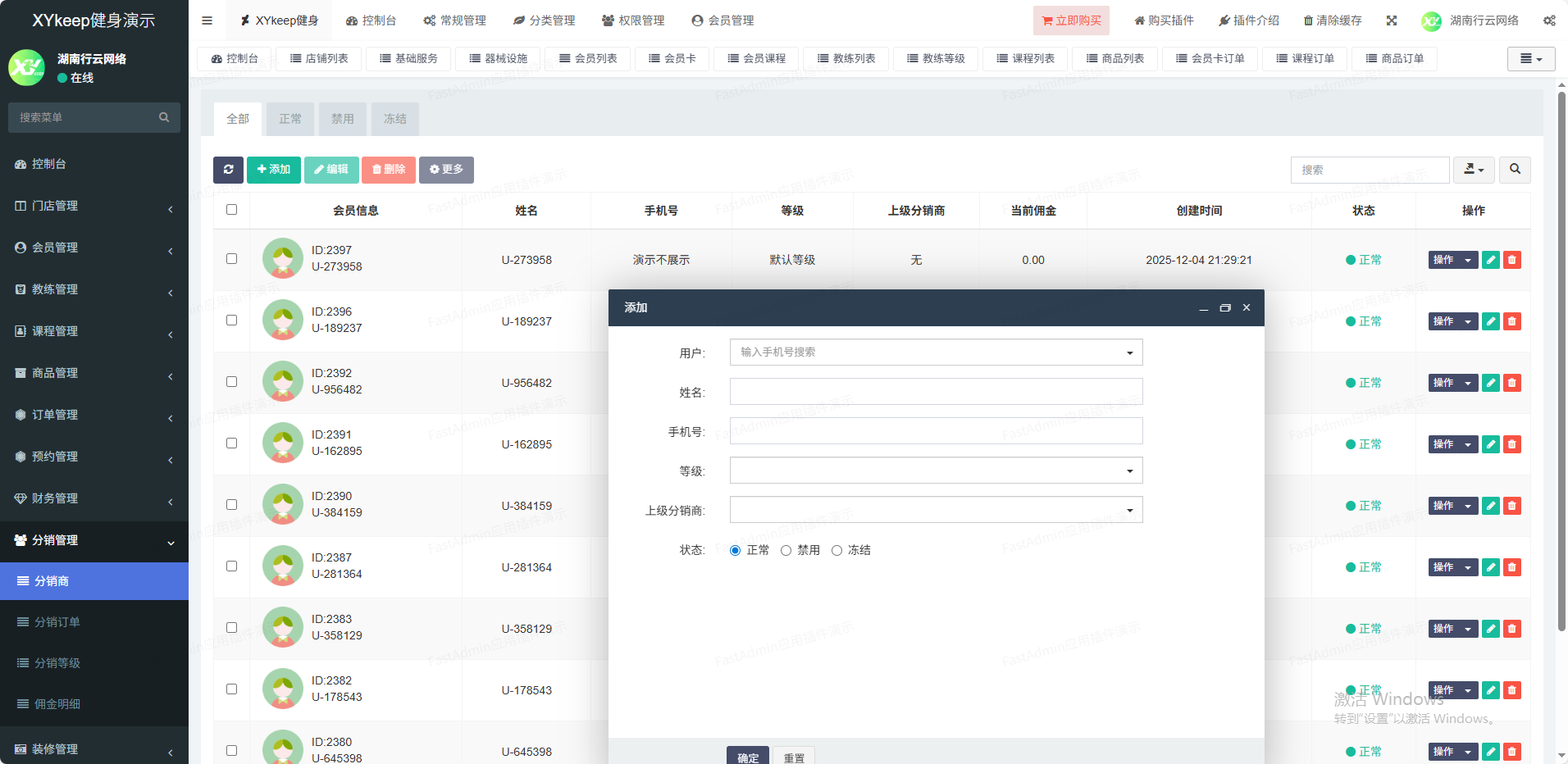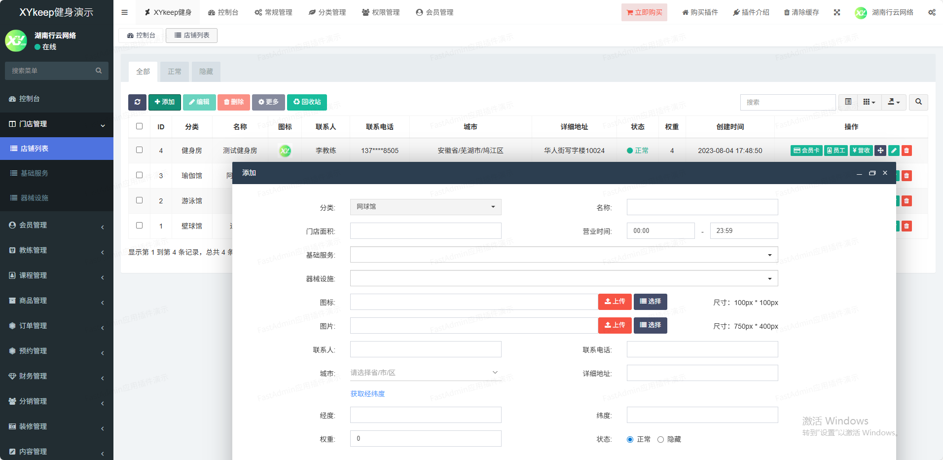 (1)装修模块可自定义小程序端首页、商城首页、用户中心排版,自定义整体色调。(2)门店模块可管理多个门店,门店均可售卖课程、办理会员卡。(3)会员卡模块用户可选择门店办理会员卡(4)教练模块教练可分等级设置课程佣金,可扫码核销预约课程。(5)课程模块可售卖私教课程,会员购买之后可预约上课。(6)商城模块可售卖健身周边产品、包含物流查询商品管理等功能。(7)订单模块包含会员卡、课程、商品订单。(8)预约模块会员可在小程序端预约门店和教练上课(9)财务模块后台可处理教练和分销商提现。(10)分销模块 二级分销、课程,会员卡,商品均可分销。