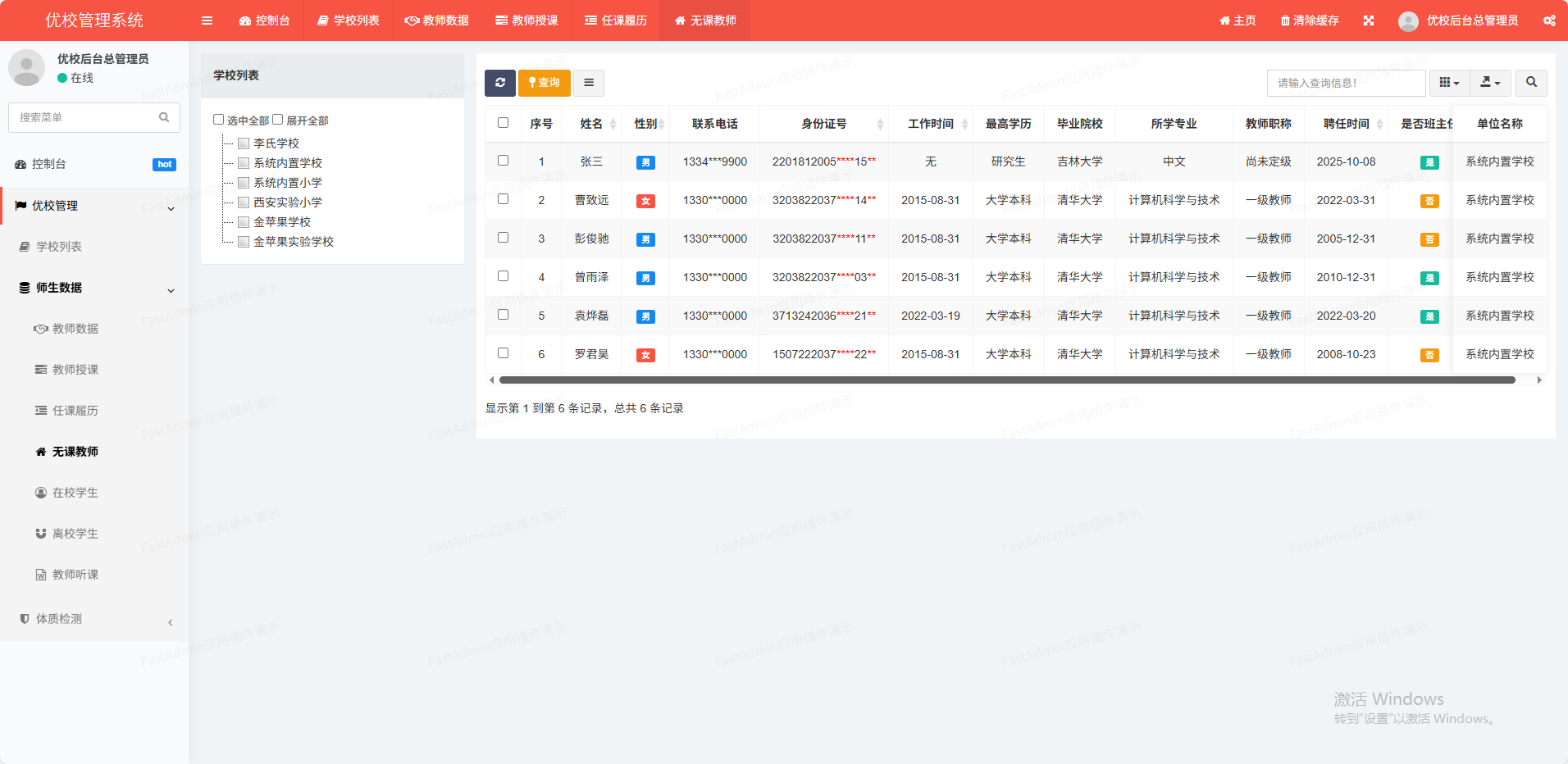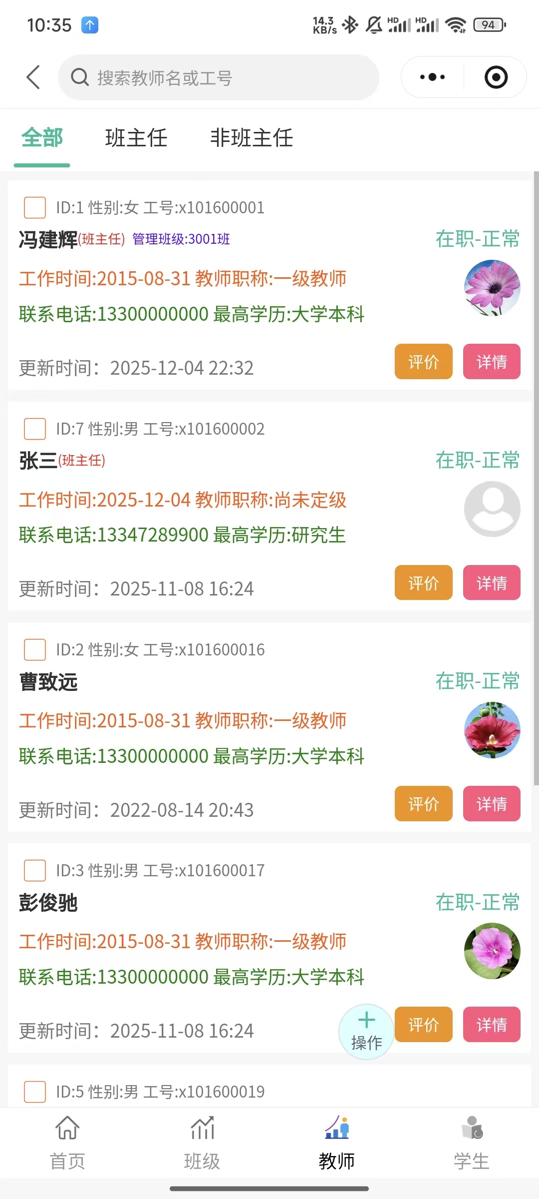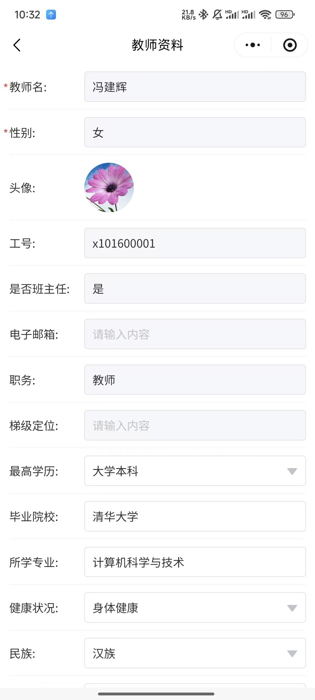 对教师的信息进行精细化管理,方便学校日常管理中有关教师数据的使用。