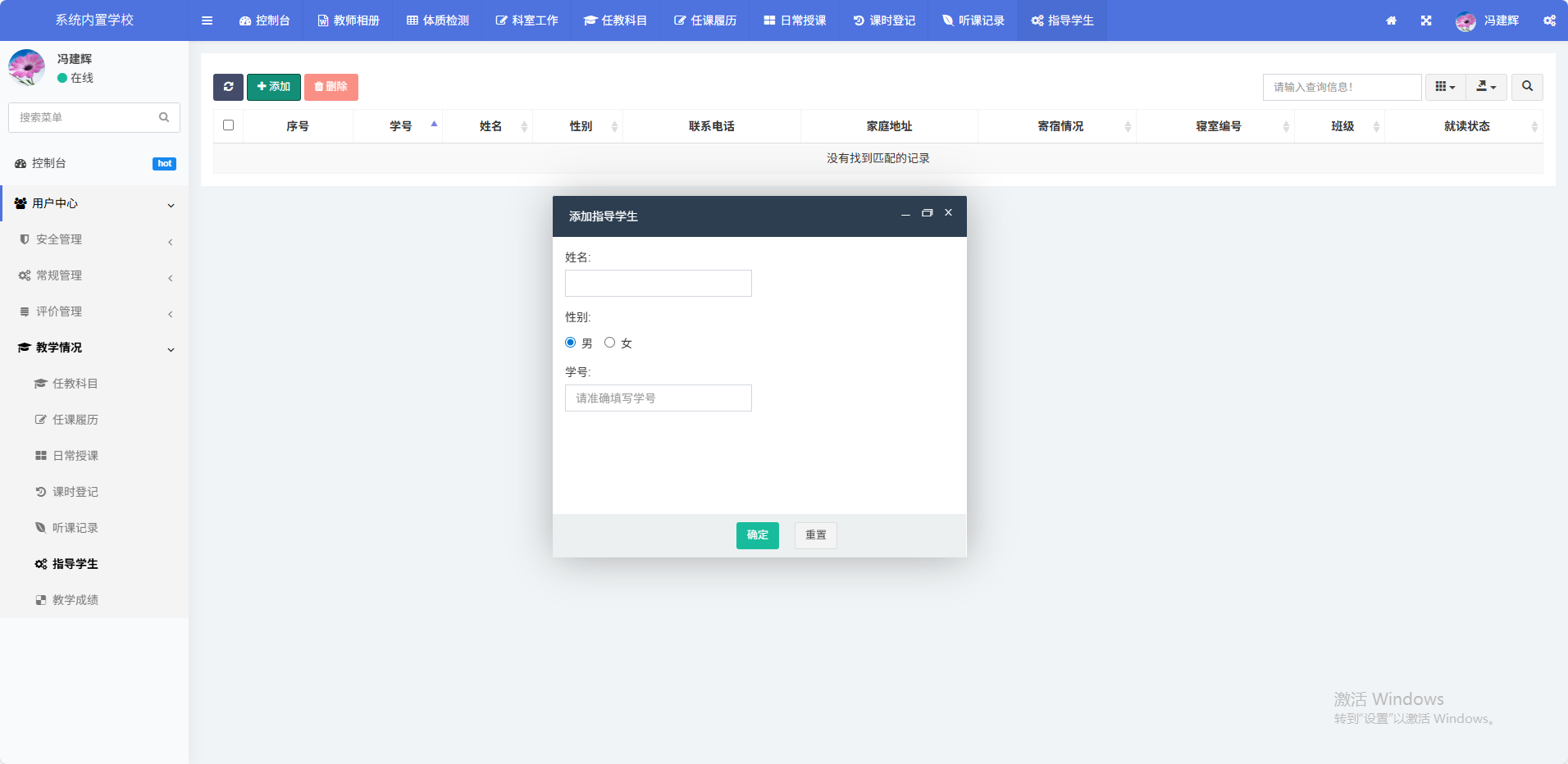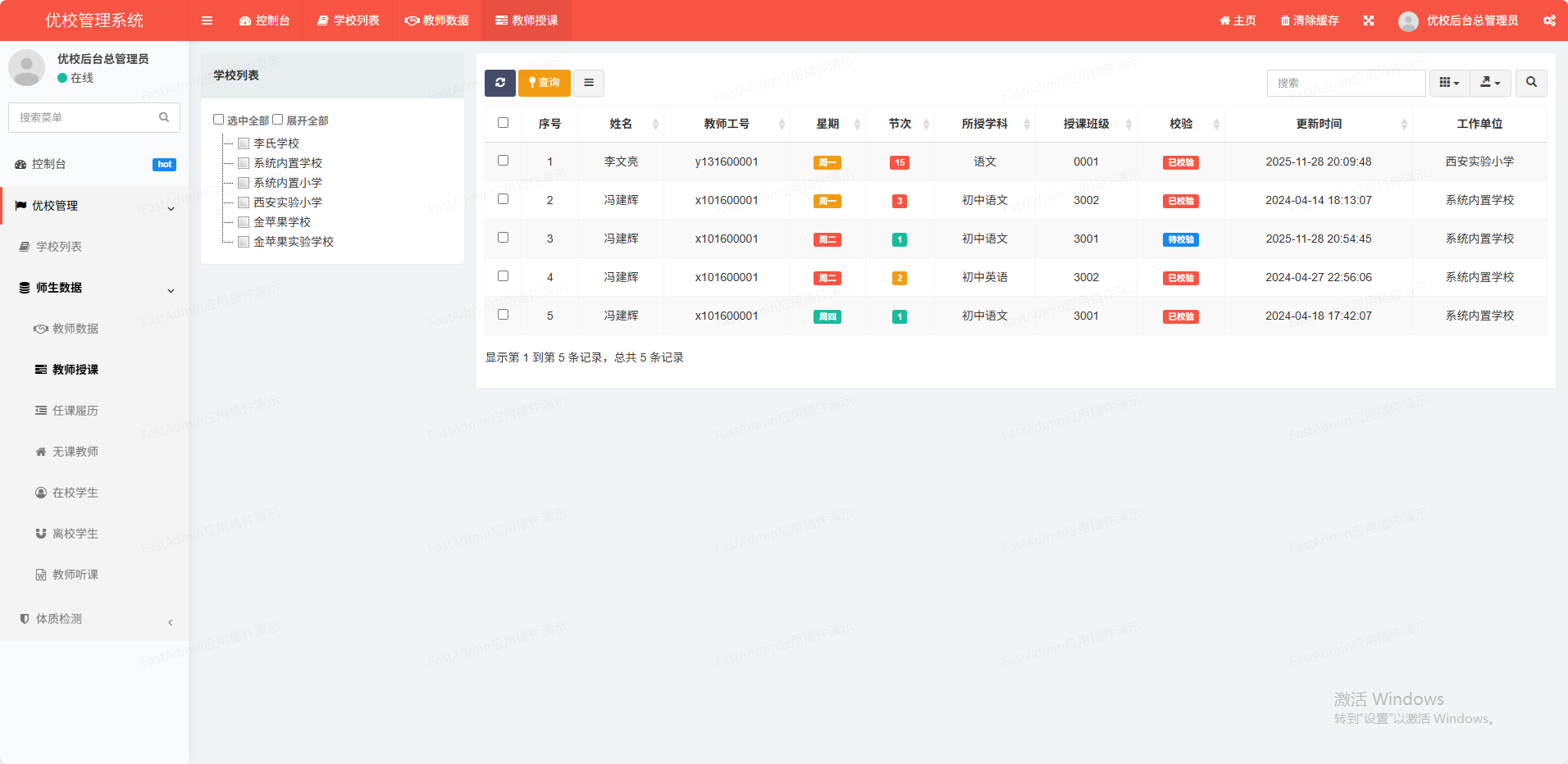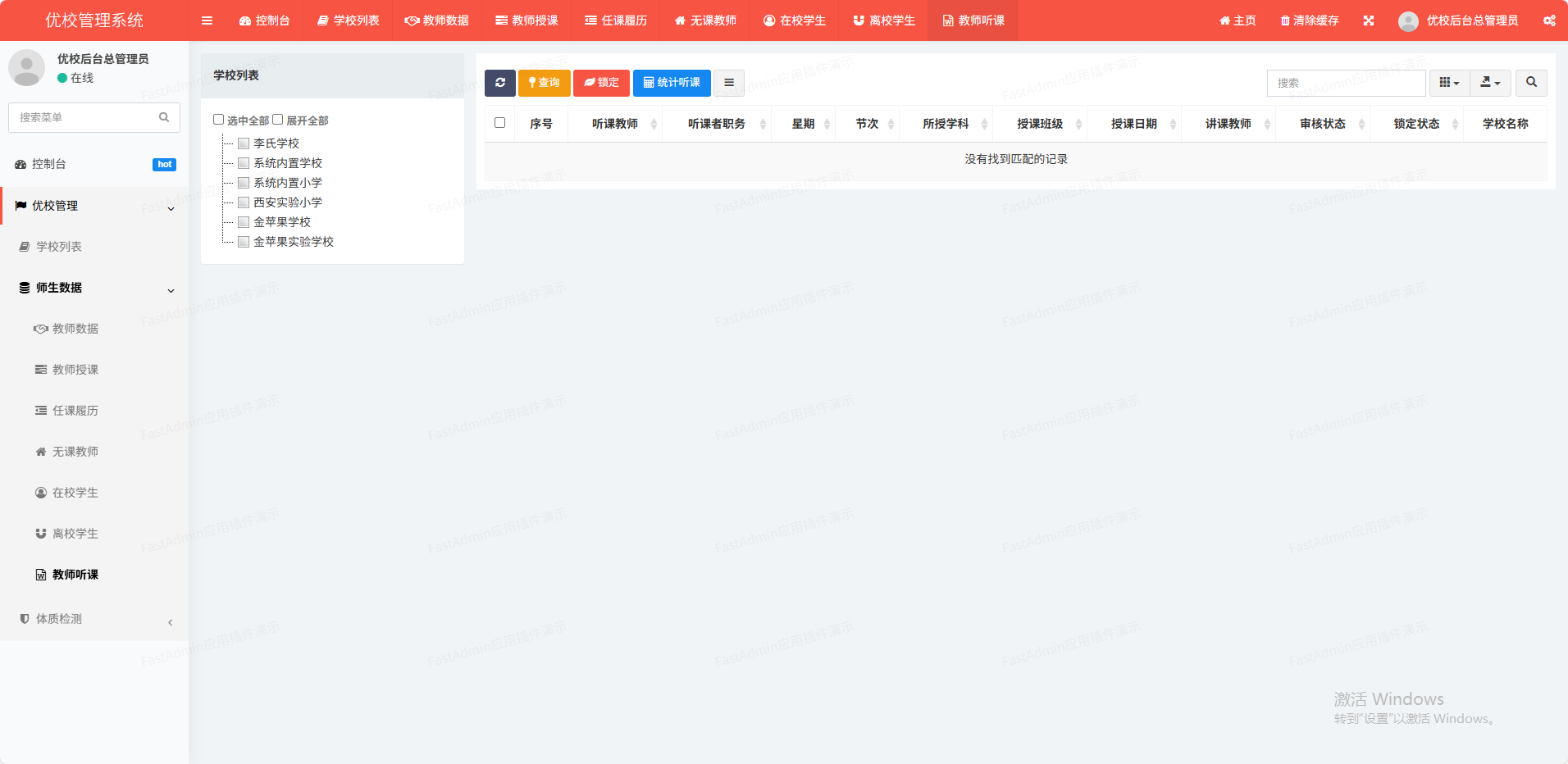 用于登记检查的授课记录(调休、请假换课等情况也可以登记),支持按不同时间段进行汇总统计。