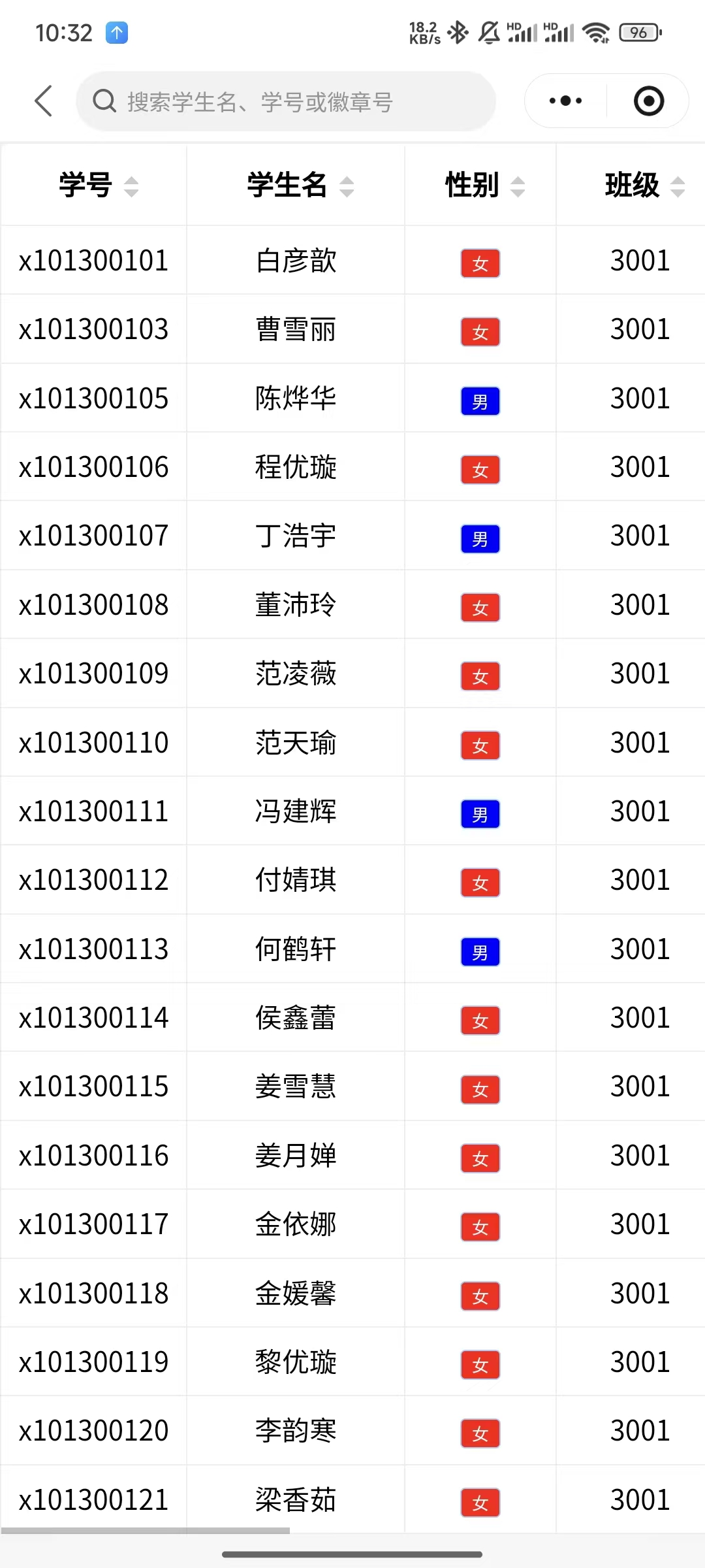 根据姓名和班级,从系统中提取满足条件的学生学号、姓名、徽章号等,便于和系统外的一些数据进行交互。