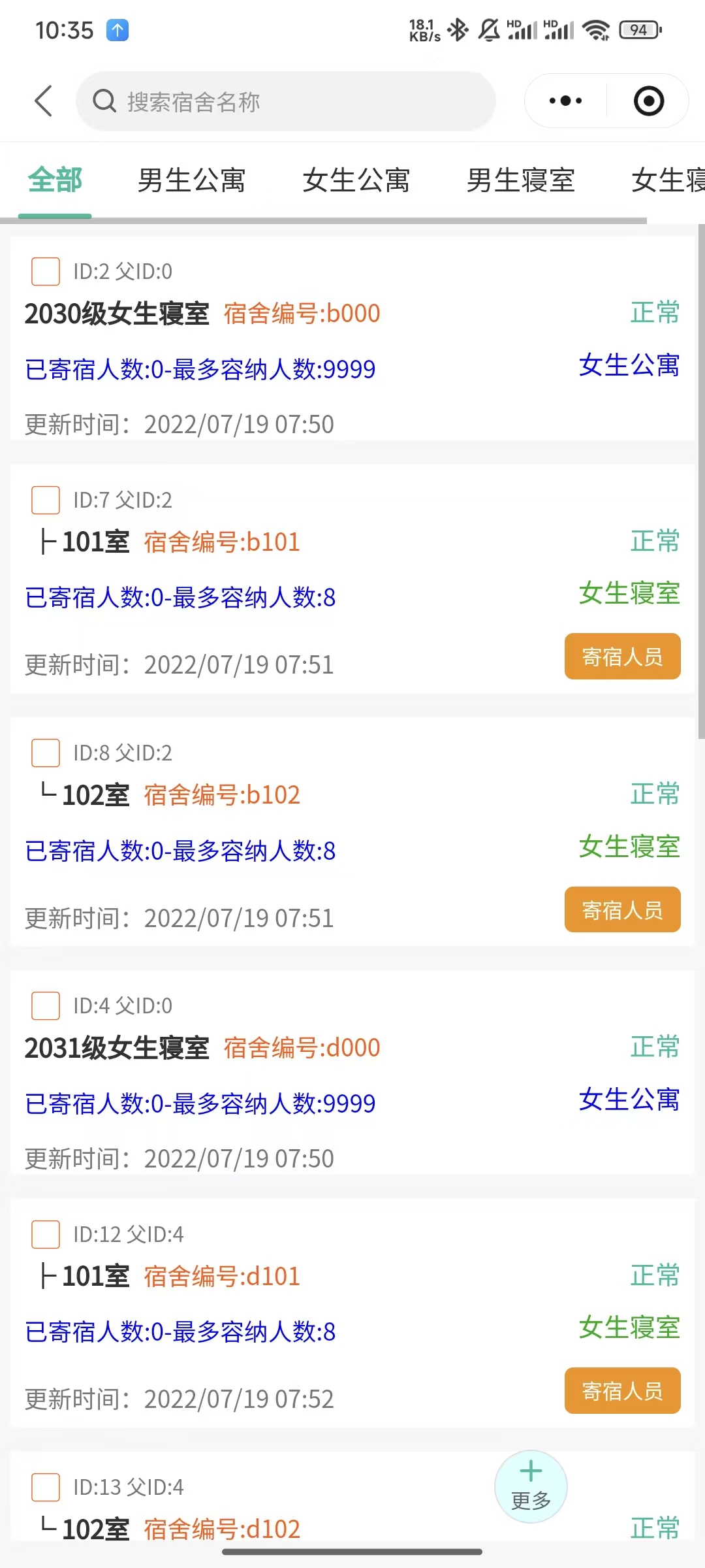 (6)寝室调整