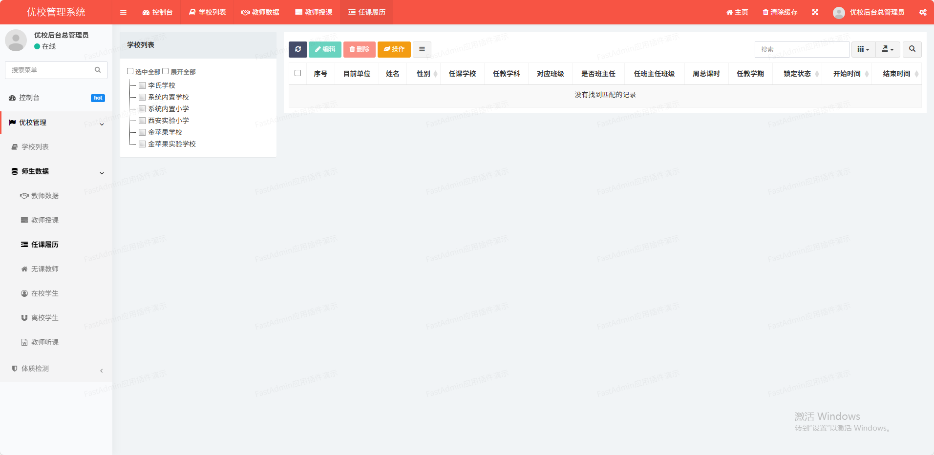 记录教师的任教情况,支持总端和学校端对任教履历记录的维护。
