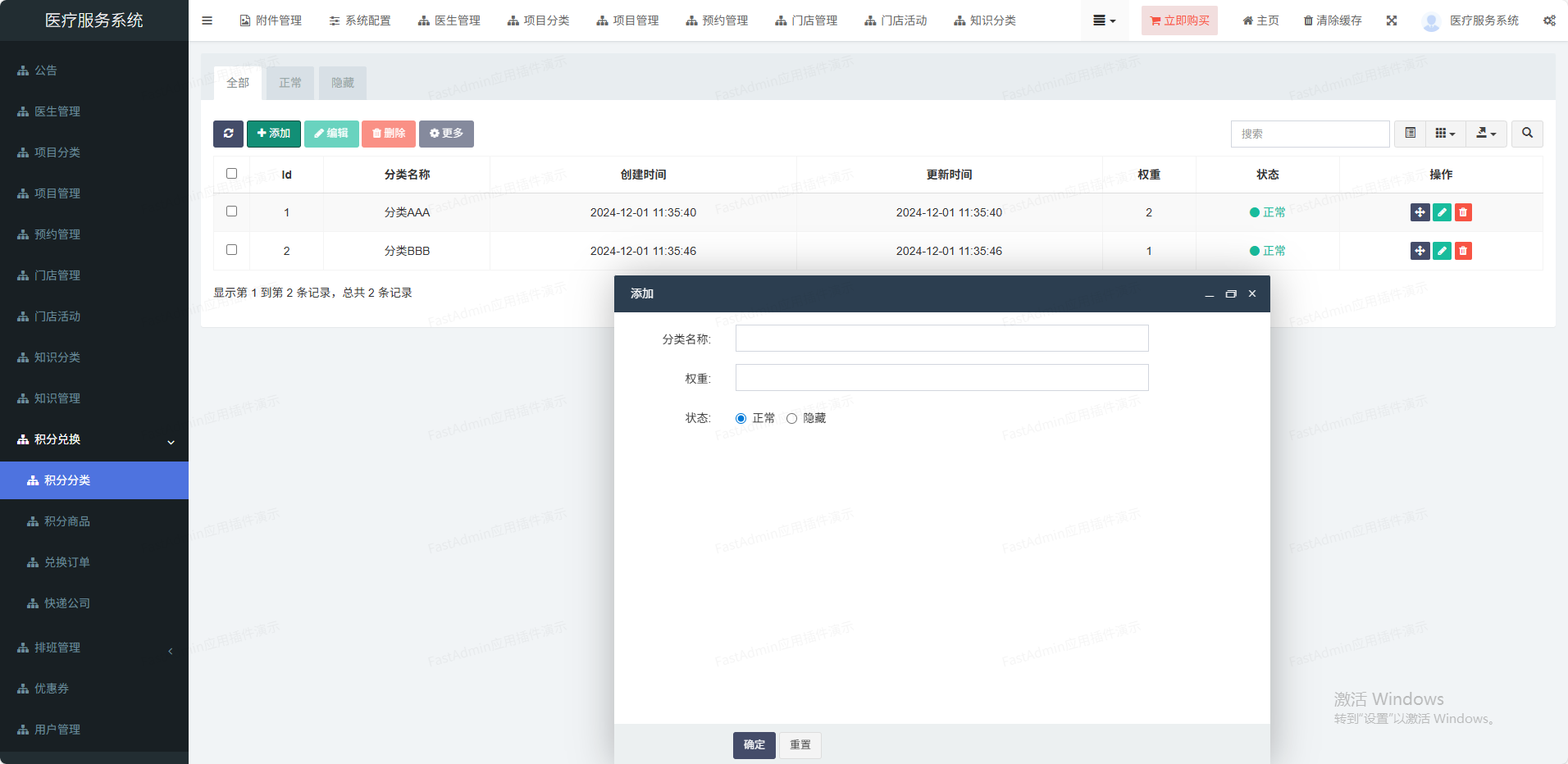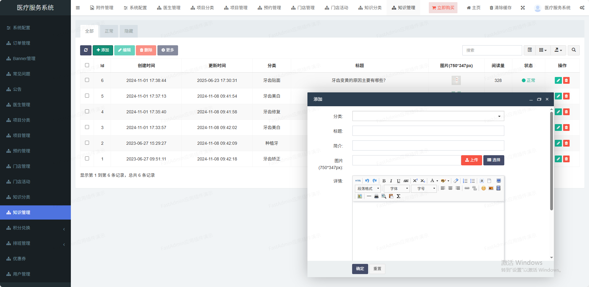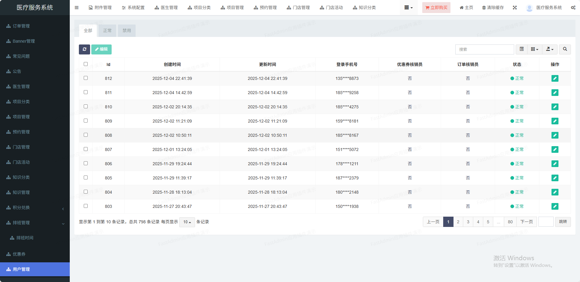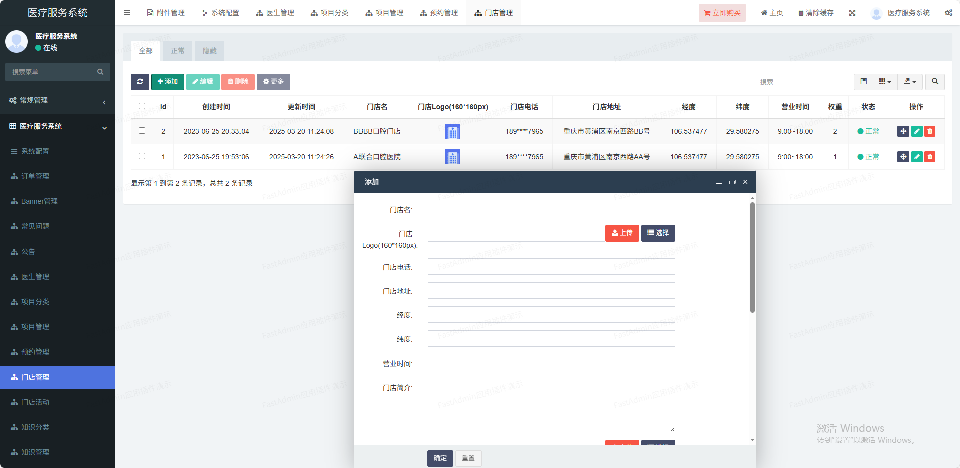 (1)门店管理可以设置多门店,也可单门店(2)核销功能管理员可以打开微信扫一扫核销码进行核销(3)系统配置设置小程序、公众号、短信等信息(4)会员管理多端会员统一,设置核销员(5)优惠券抵扣订单,单独到店核销(6)活动管理可以对某个项目设置多个活动(7)项目分类分类管理,可以推荐到首页(8)项目管理价格设置、店铺设置、坐诊医生等(9)医生管理姓名、头像、擅长领域、级别等(10)手机登录支持一键登录,:手机短信登录(11)排班功能排班自定义,多时段定义、请假功能(12)预约功能预约某家门店某个医生(13)分销功能支持分销赠送积分功能,积分可兑换礼品