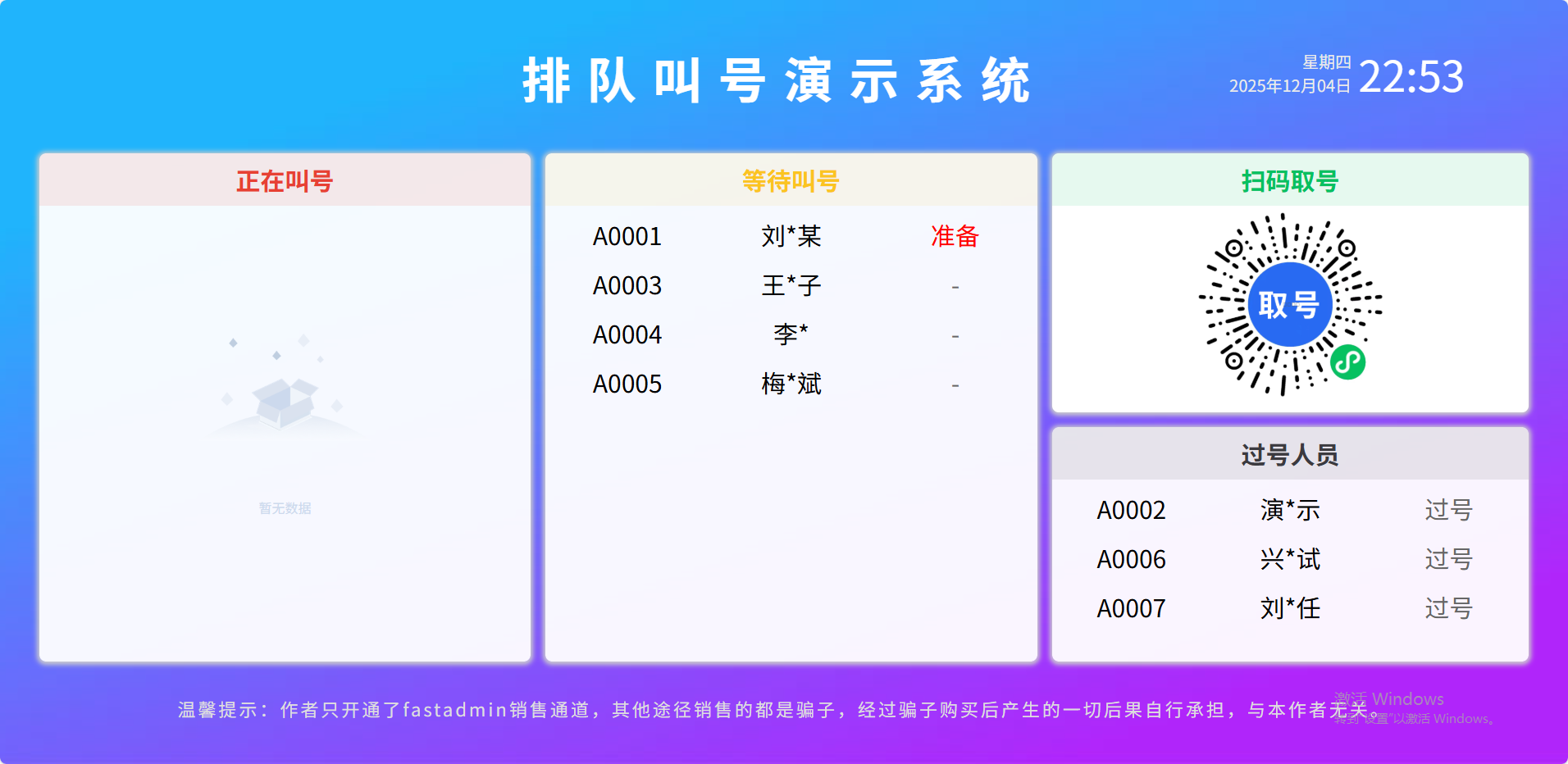 支持多个窗口管理员同时叫号且具有防重复特性。