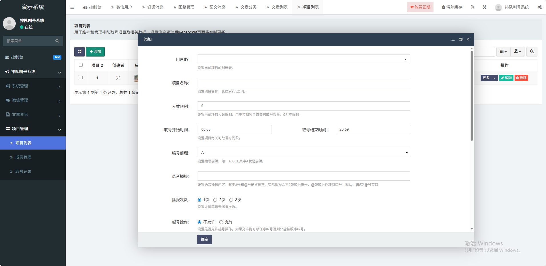 每个项目可以单独设置每日排队人数上限,超出后将不能继续取号。