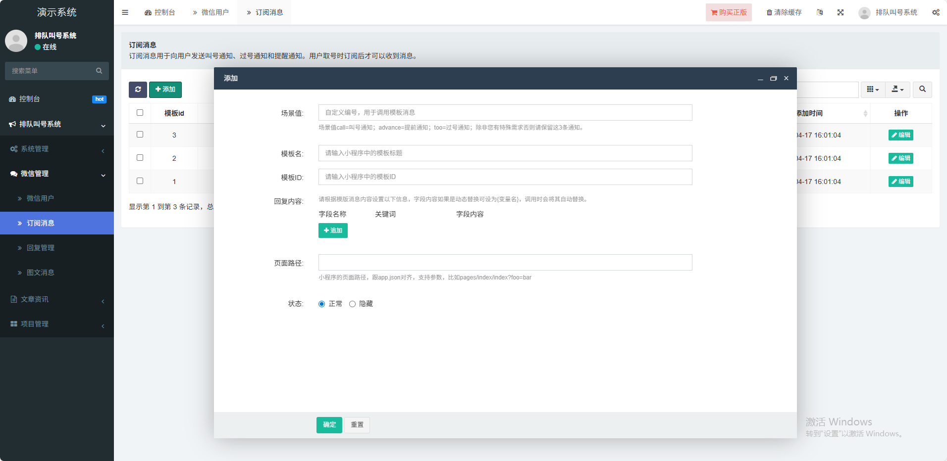 取号后,根据前方等待人数自动发送微信订阅消息提醒,即使不在场也不必担心错过叫号