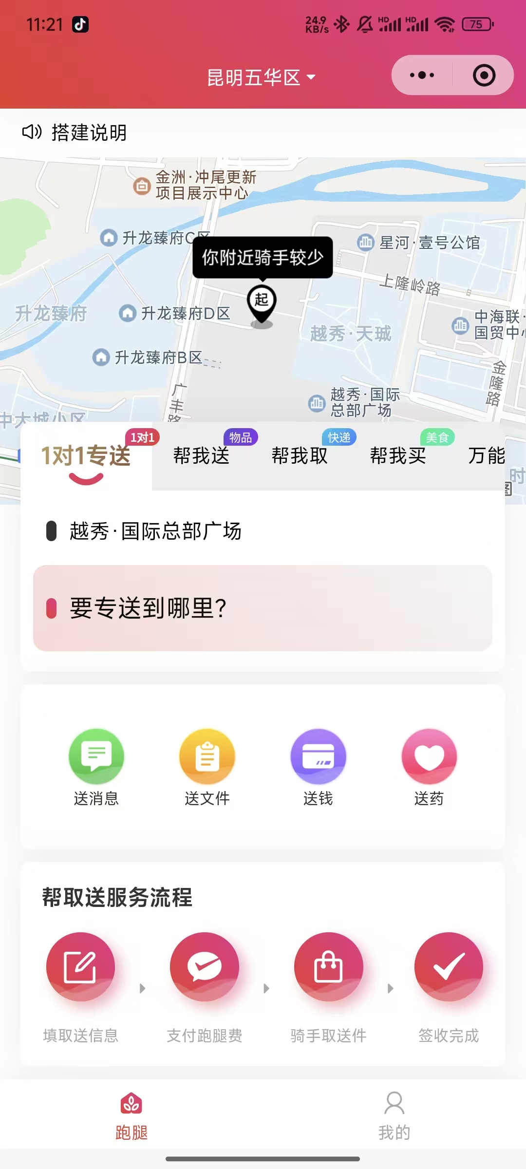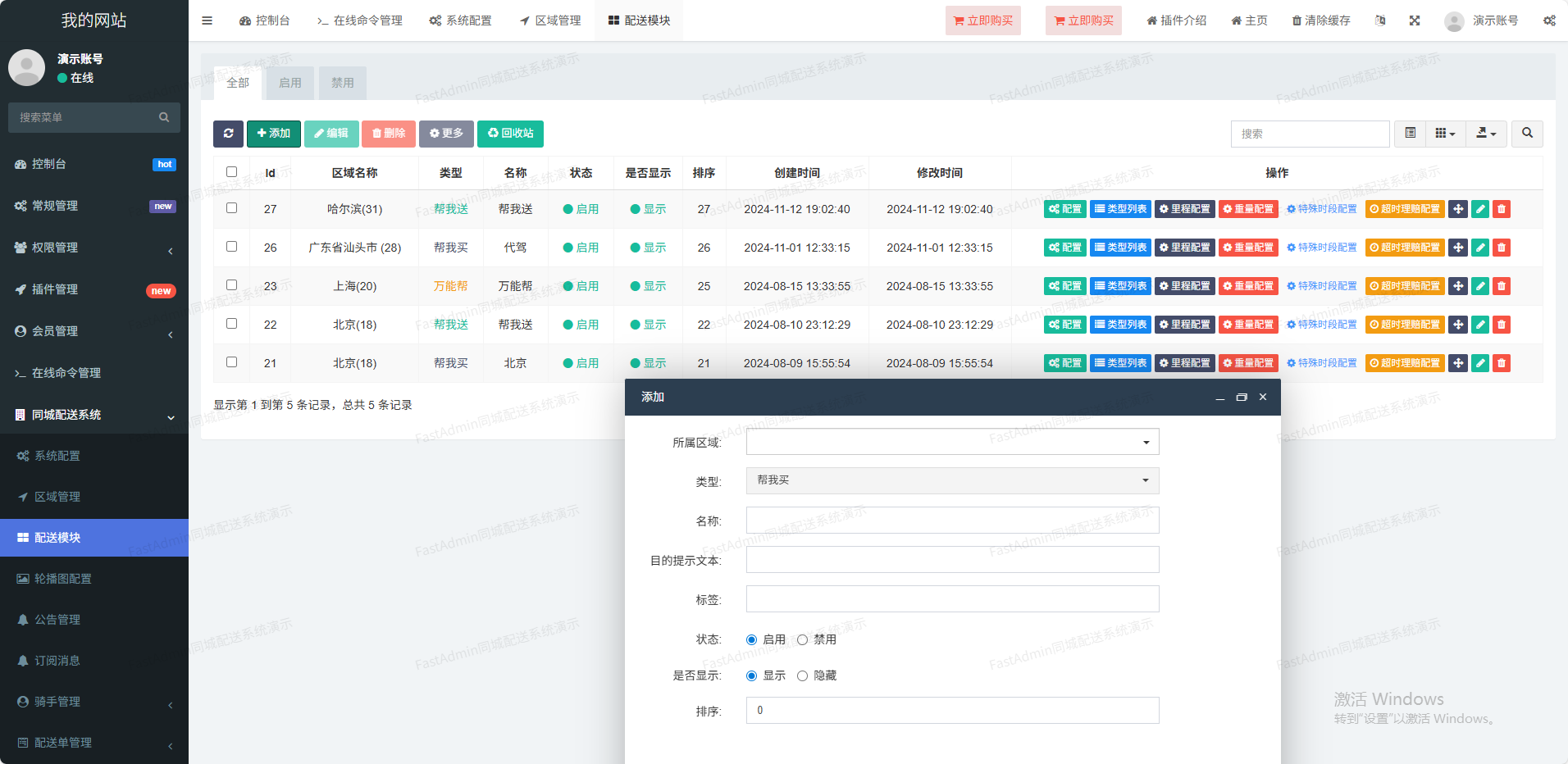 可配置多个配送模块(帮我送、帮我取、帮我买、万能帮),针对不同模块设置不同的计费规则及功能