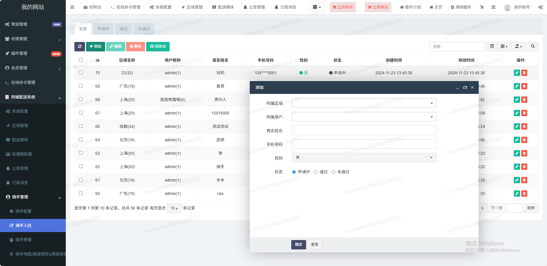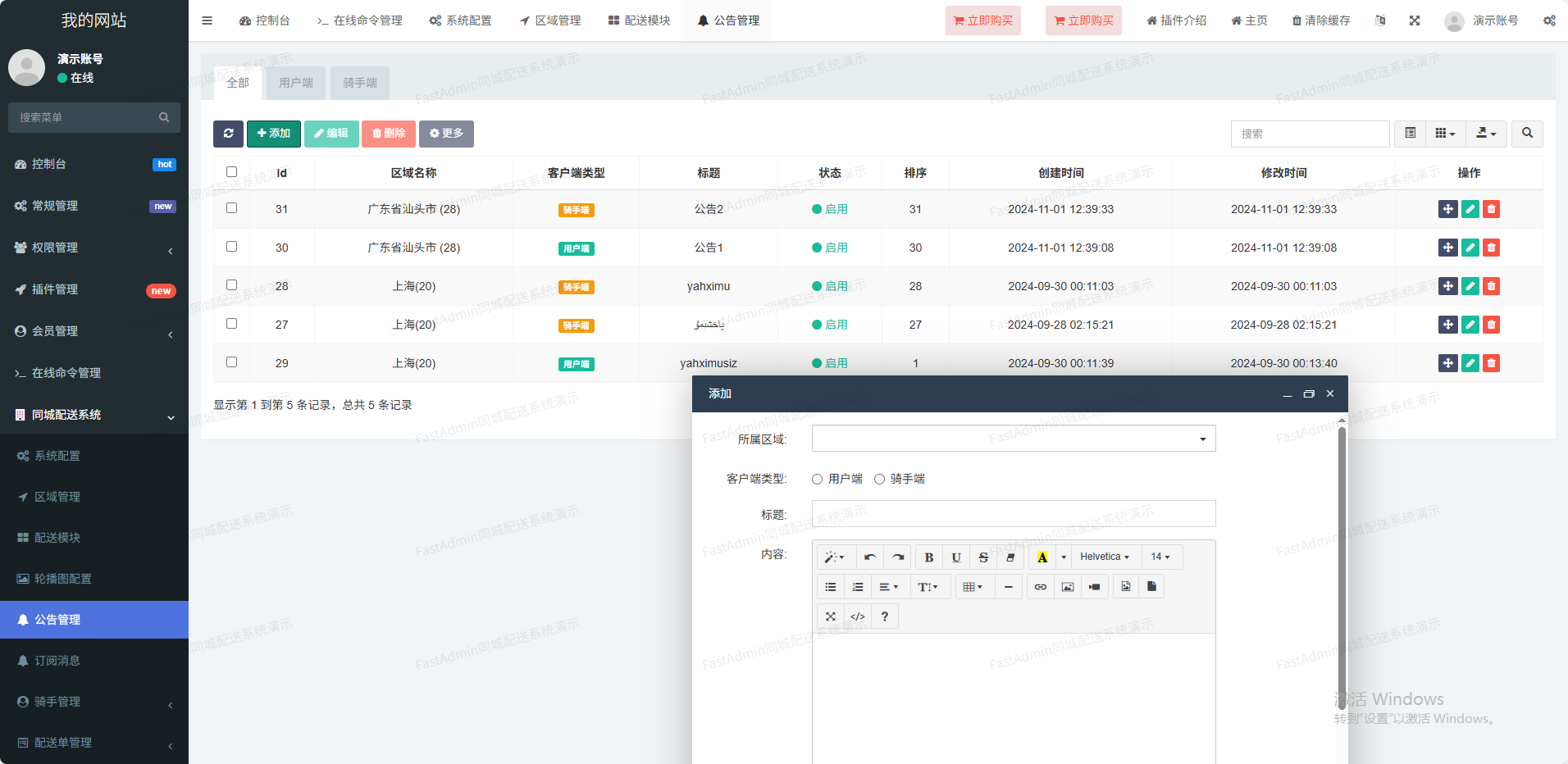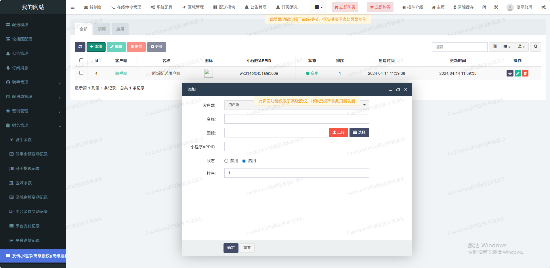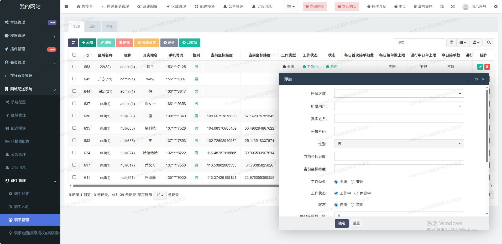 后台可根据不同区域、不同模块配置基础费,以及针对骑手设置配送抽佣、提现抽佣功能