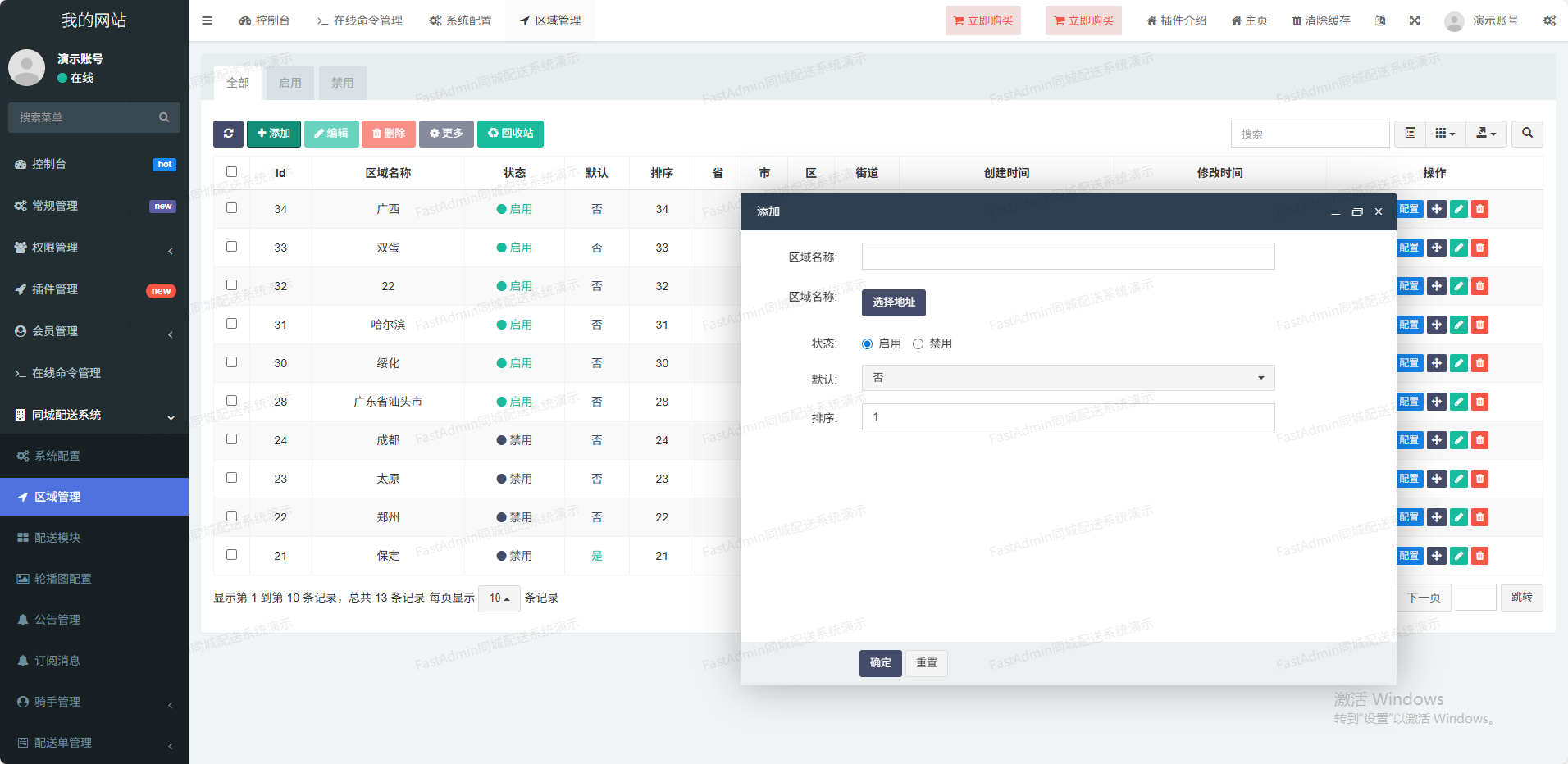 可设置多个区域同时运营,按区域配置模块、计费规则及相关财务统水