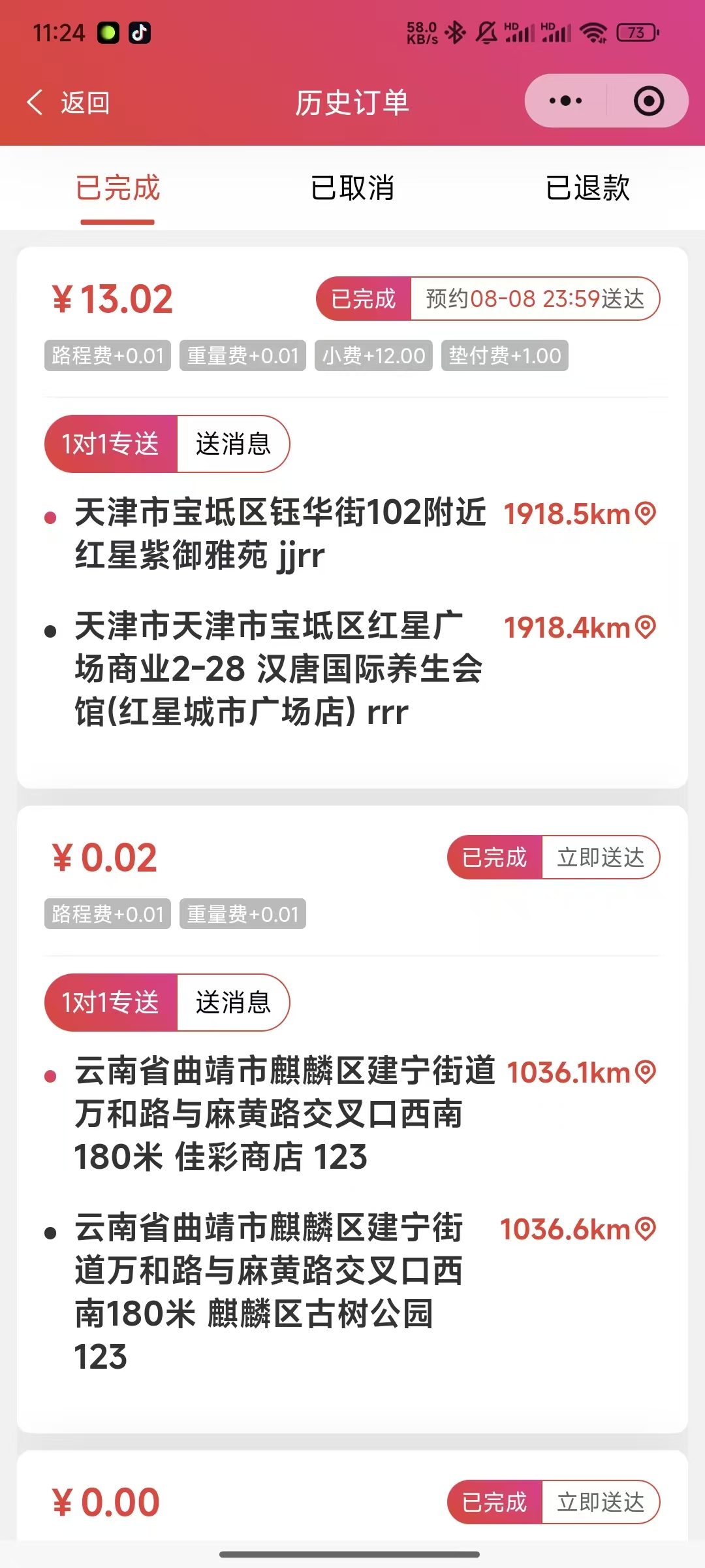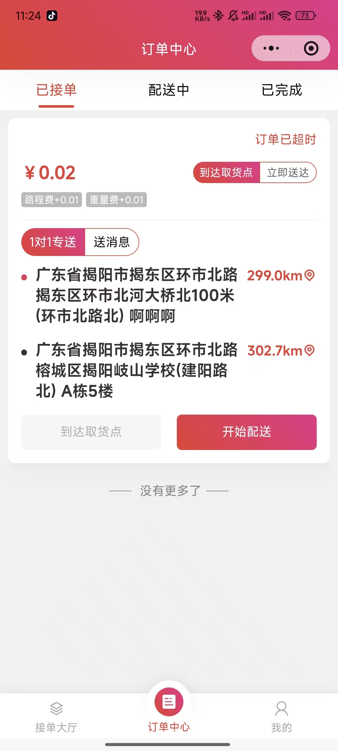 针对部分客户使用1对1专送,骑手接单只能配送完成后才可以继续接单