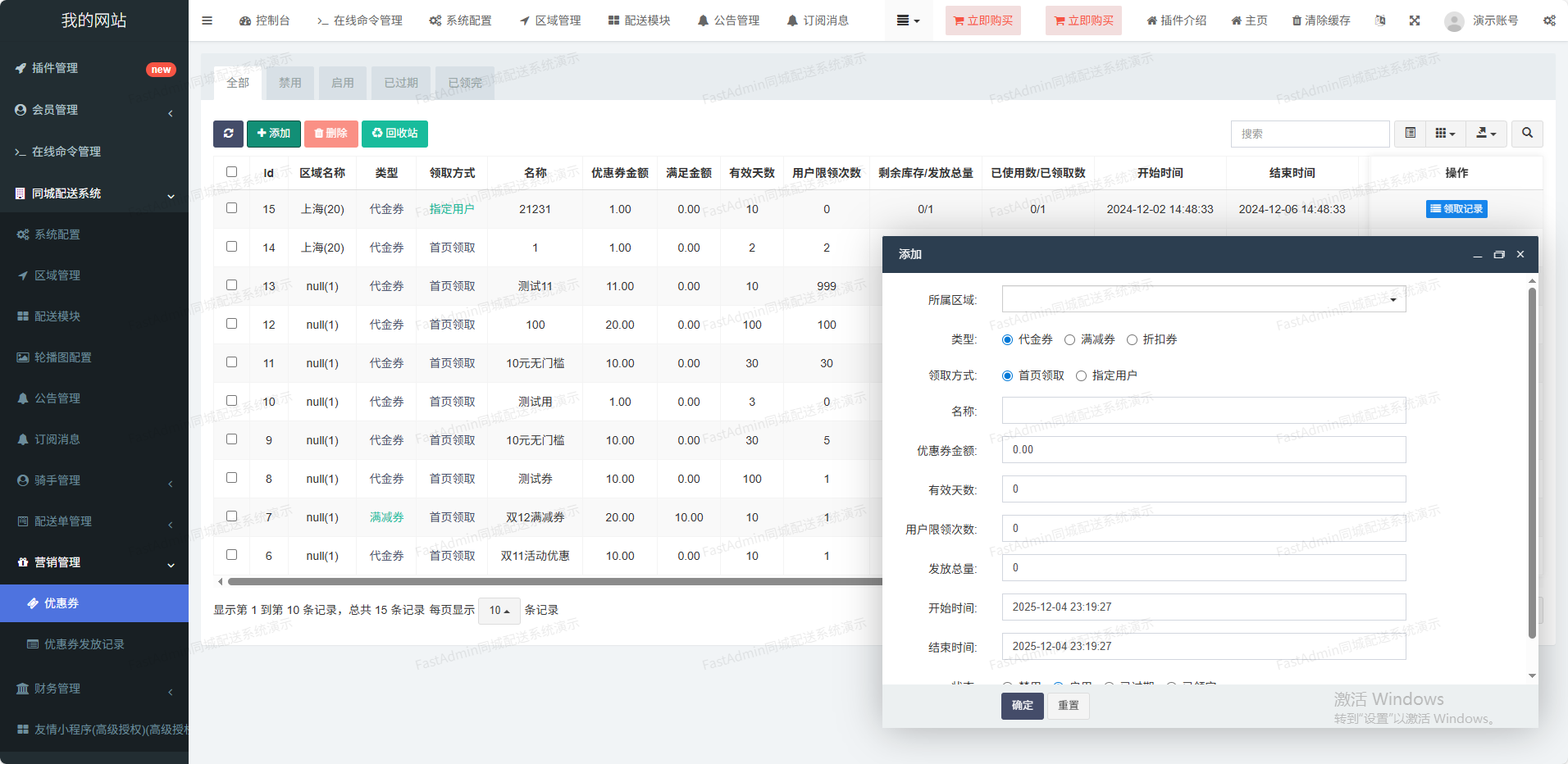 后台配置超时规则,骑手配送超时扣除部分佣金