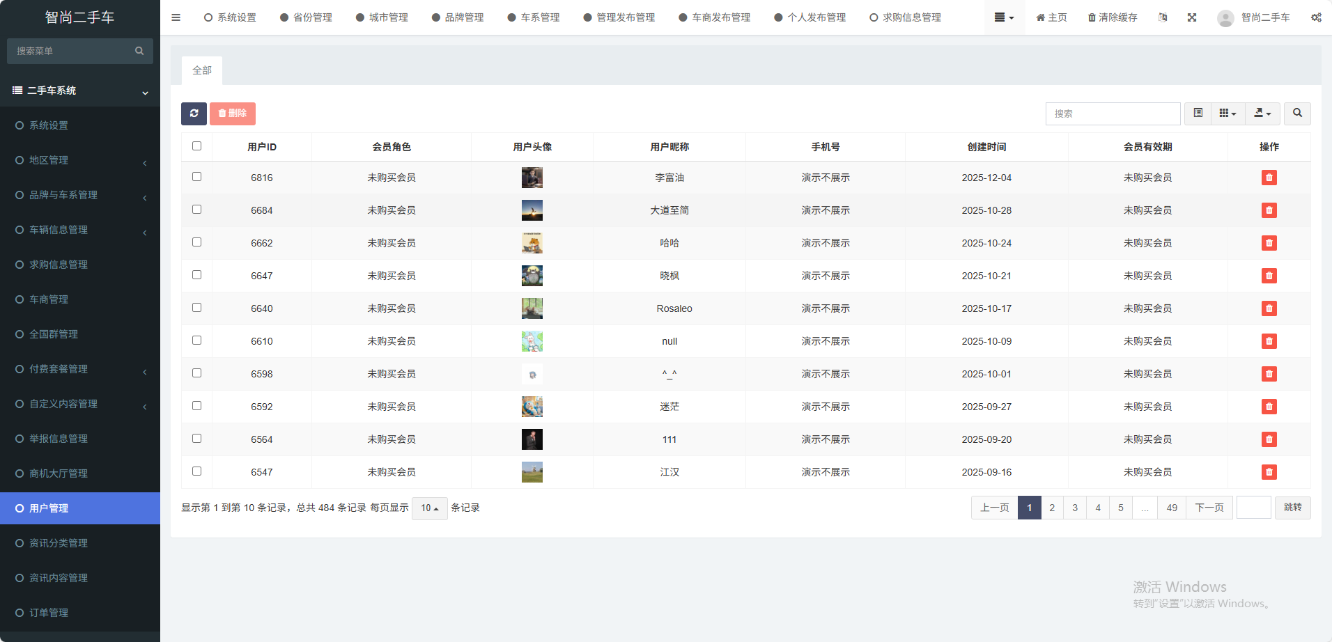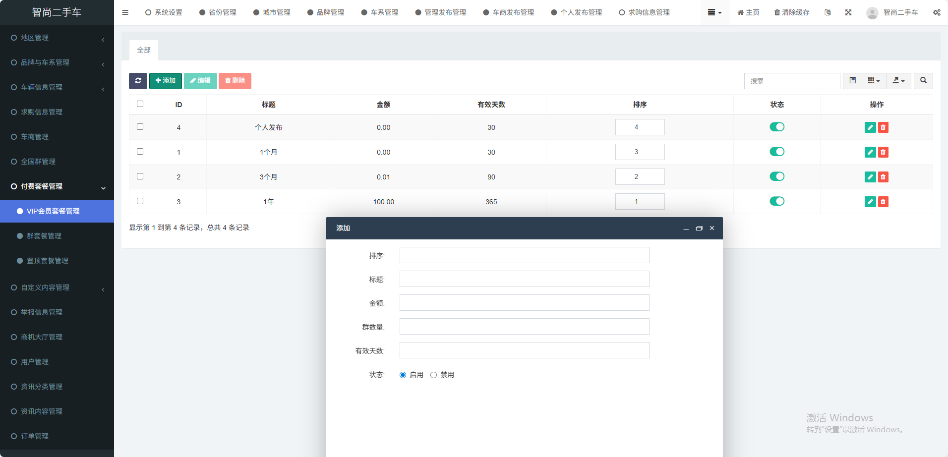 支持用户购买会员VIP权限发布车源