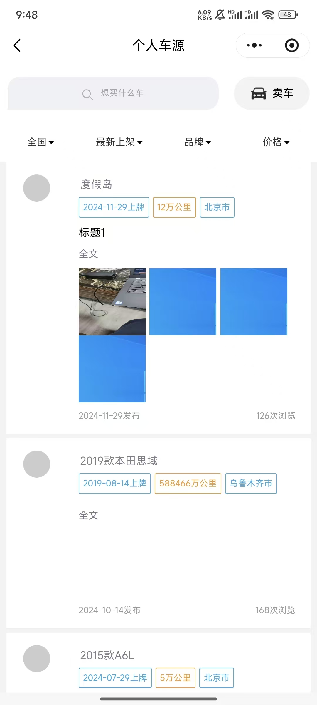 支持用户分享车源信息
