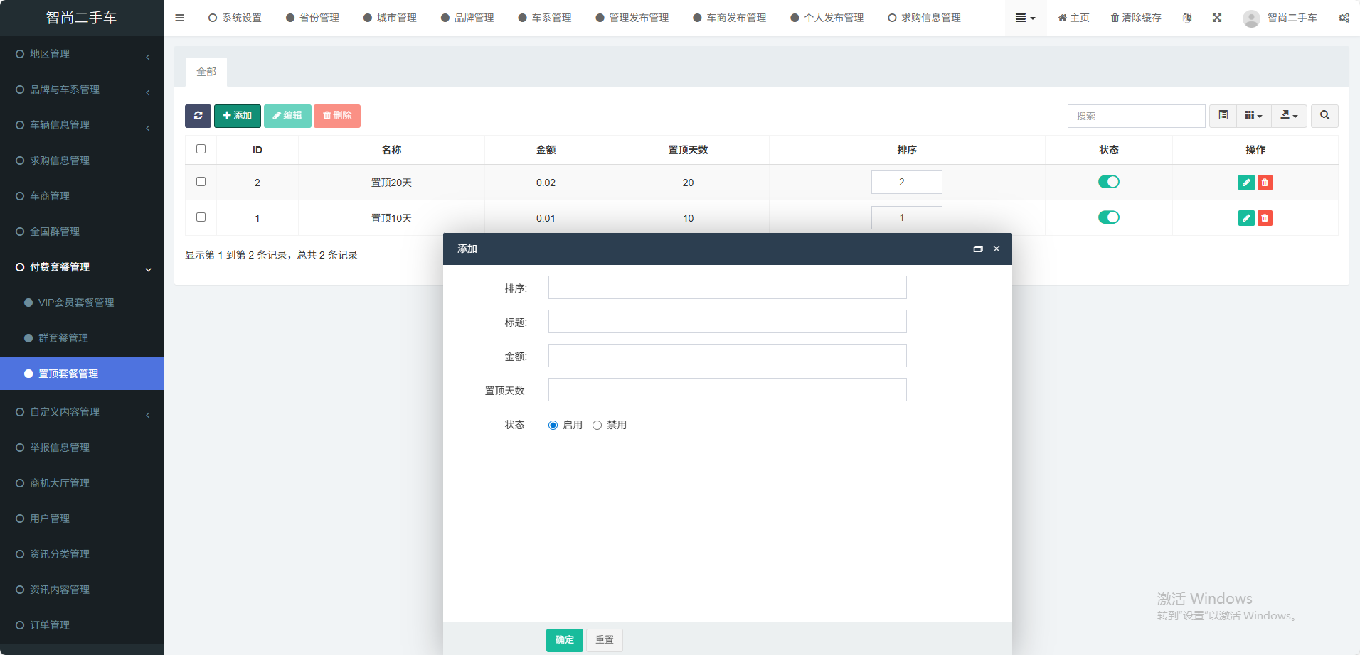 支持用户为了提高爆光度,可以选择不同套餐置顶支付车源