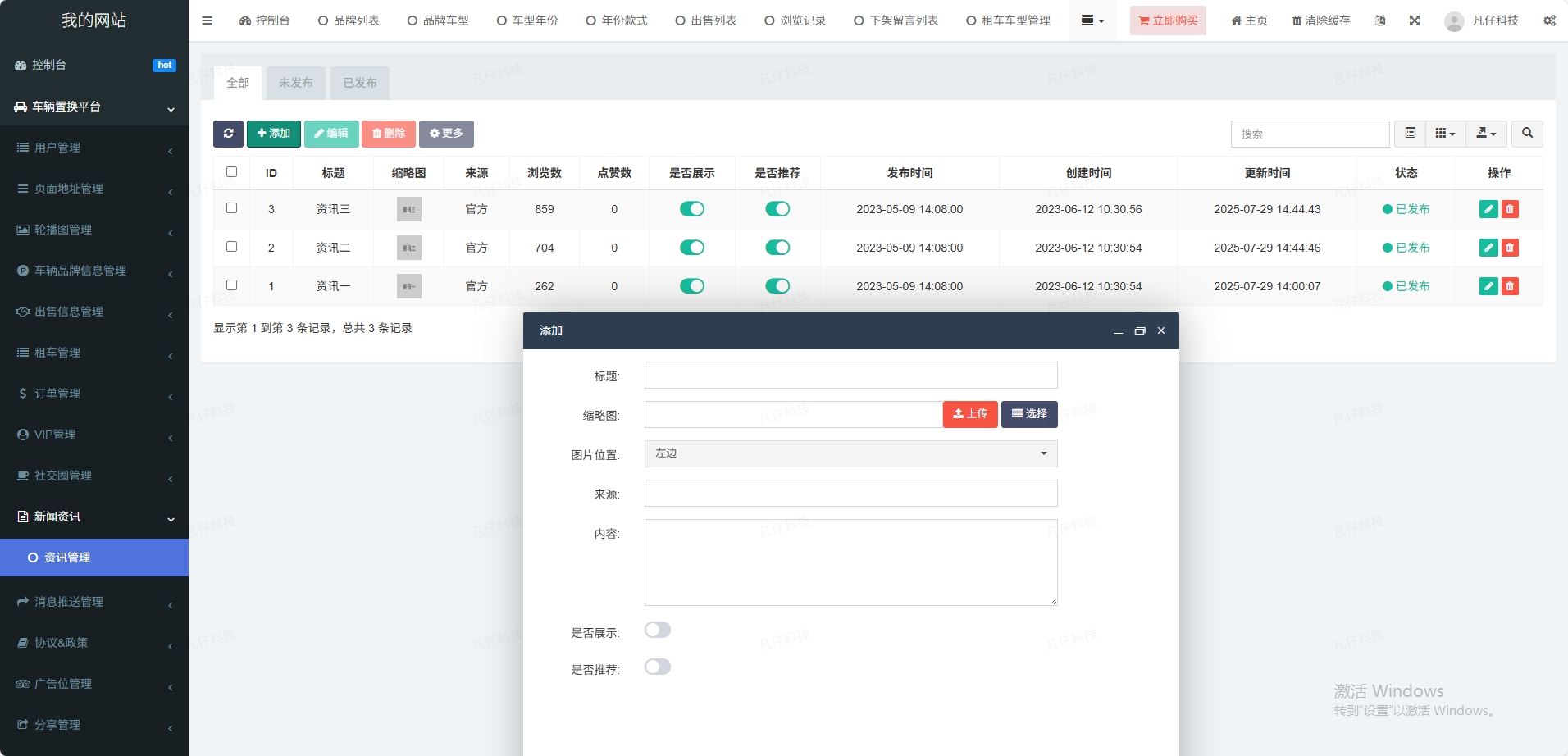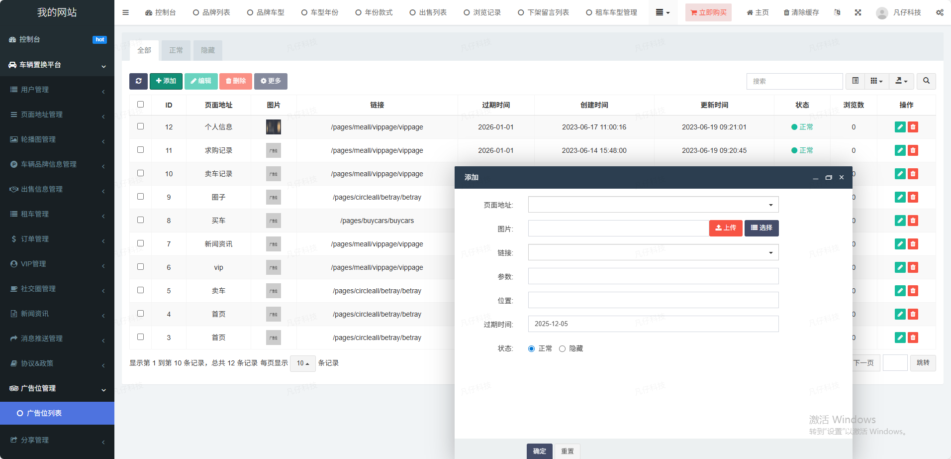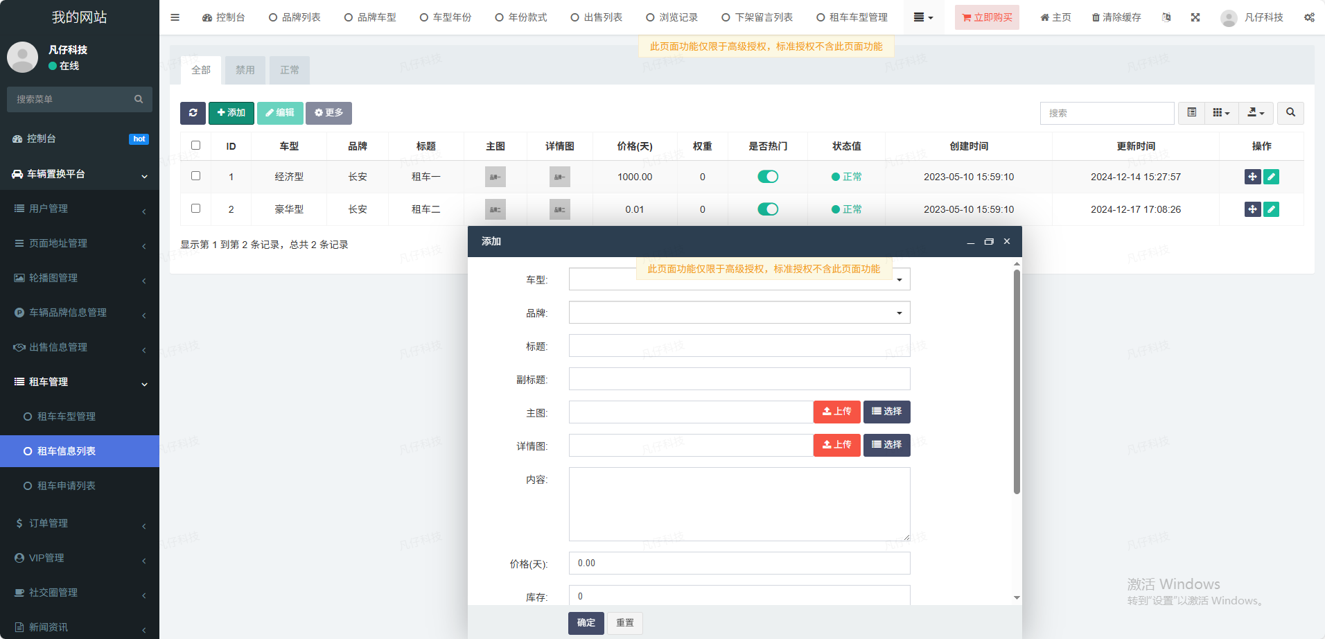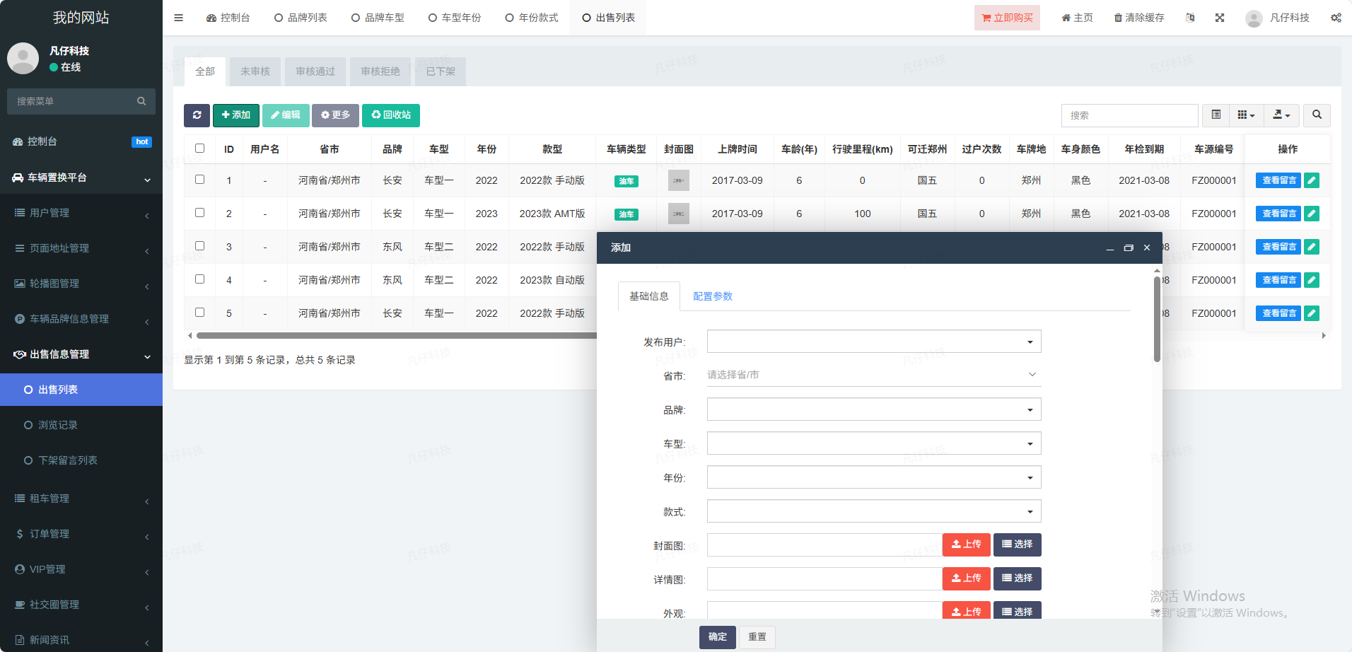 (1)车辆发布自主发布车辆信息(2)圈子交流可以在圈子进行信息交流(3)数据统计留言数据每日的访客数量,(4)VIP机制可以更好的服务车商,多发布车辆信息(5)留言通知客户留言可以短信告知车商(6)求购信息发布客户支持在线求购(7)定位筛选匹配当前位置,获取就近的车商(8)二手车商后台管理查看自己的发布车辆信息(9)车商在线对话可以在线和客户对接(10)车辆数据查看可以查看车辆每日的浏览数据(11)信息雷达筛选有用的用户(12)租车模块支持租车功能模块(13)新能源功能支持新能源版本功能