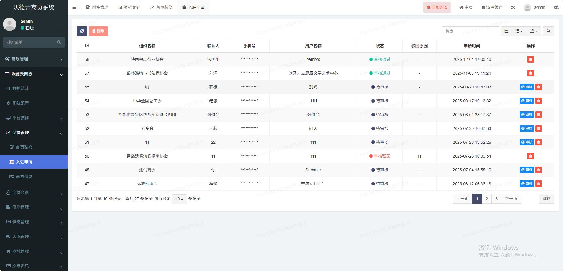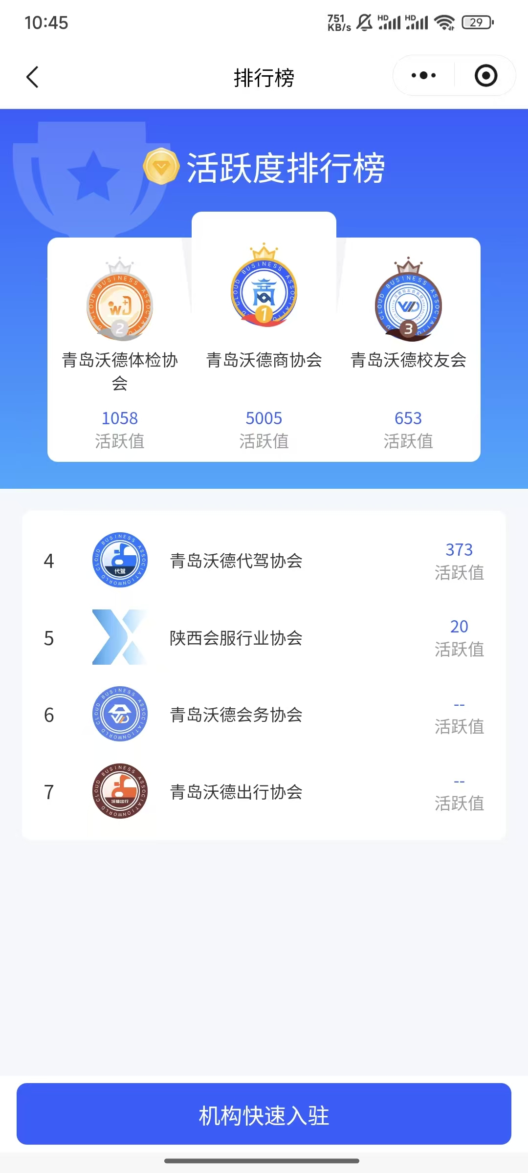 系统首页对活跃度前3名的商会、协会进行展示,促进商会、协会线上管理、提升整体的凝聚力和竞争力。