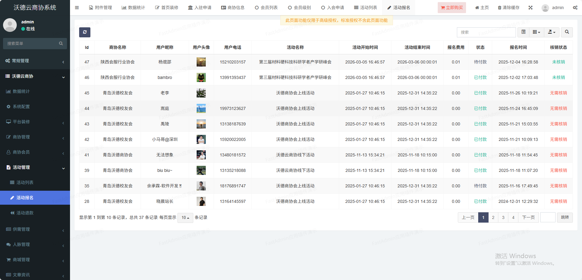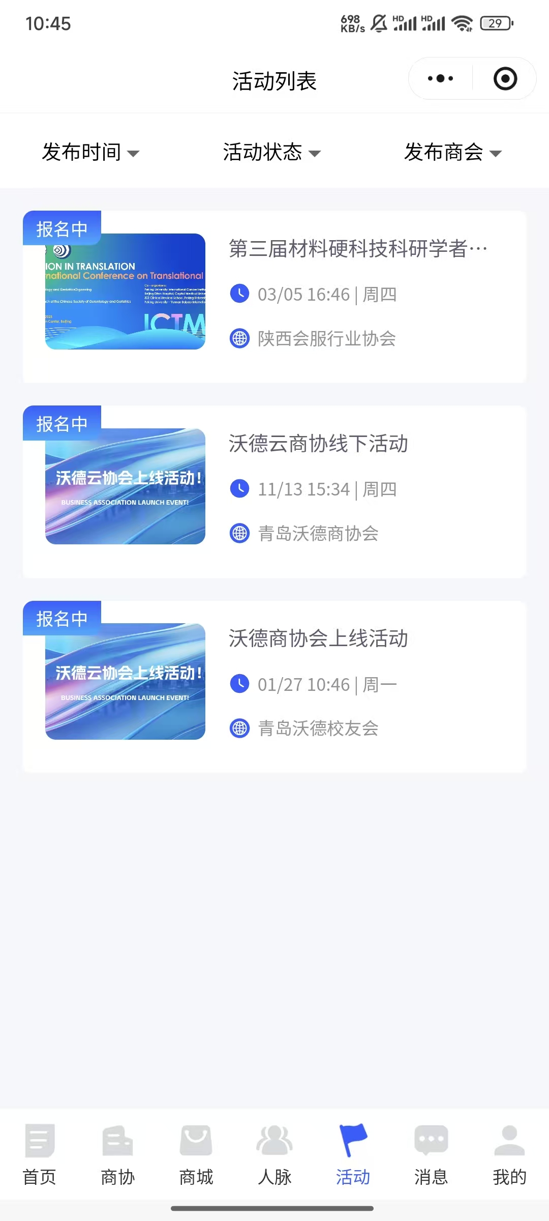 平台方可发布举办活动,商协会员和人脉可参与,促进线下和线上的用户粘度。