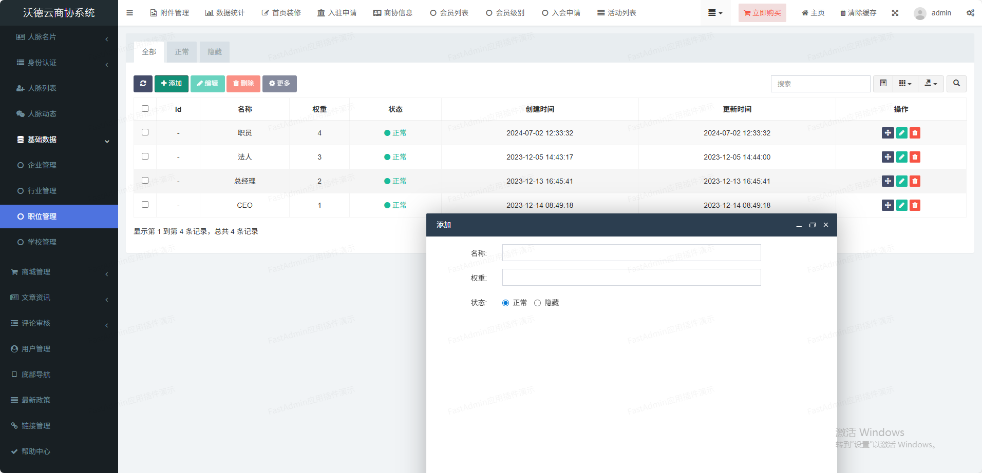 内嵌平台商城系统,主要功能有:快递管理、运费管理、轮播管理、商品管理、订单管理。