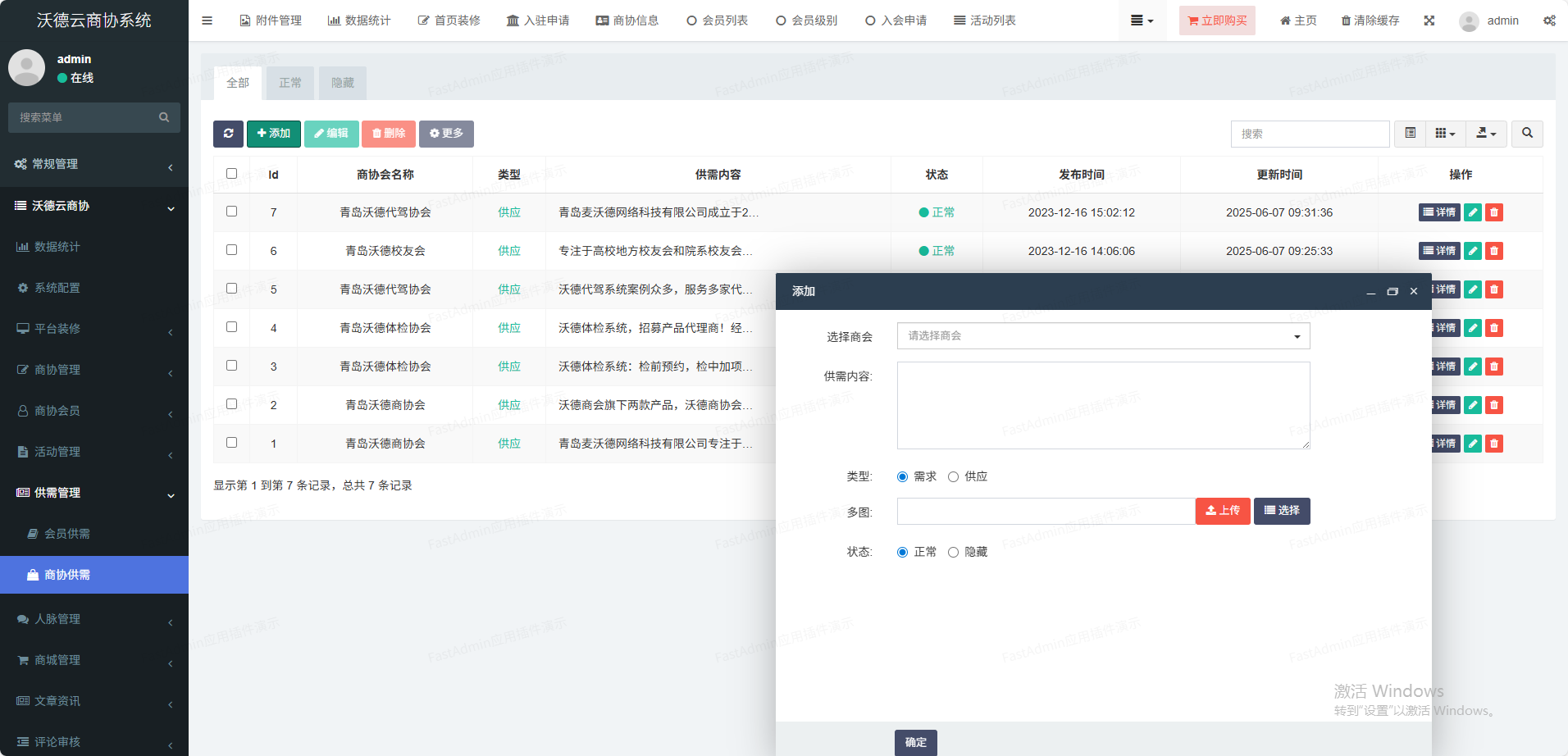 提供商会、协会发布产品介绍、企业介绍、求职招聘、采购供应等互助需求信息功能,共赢共创。