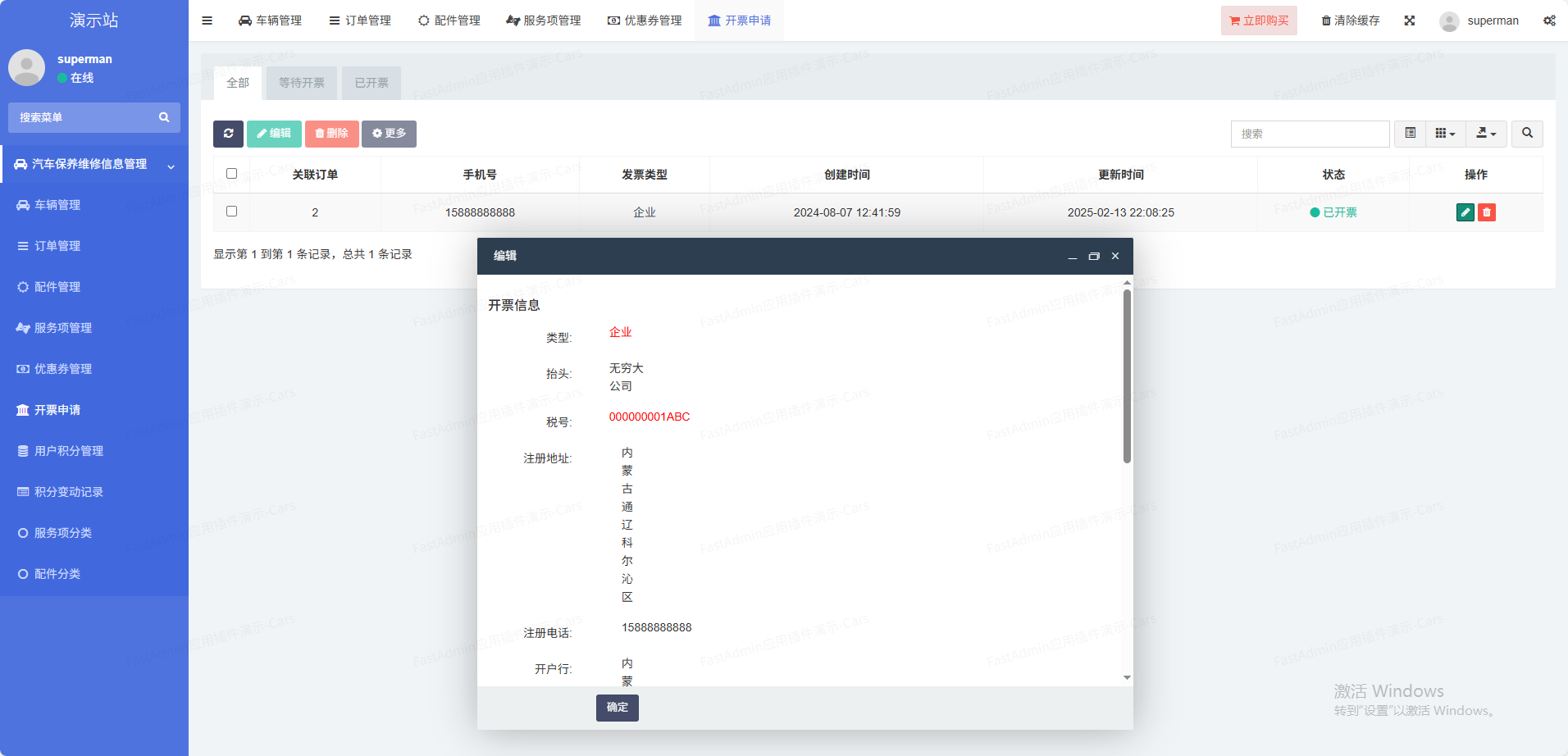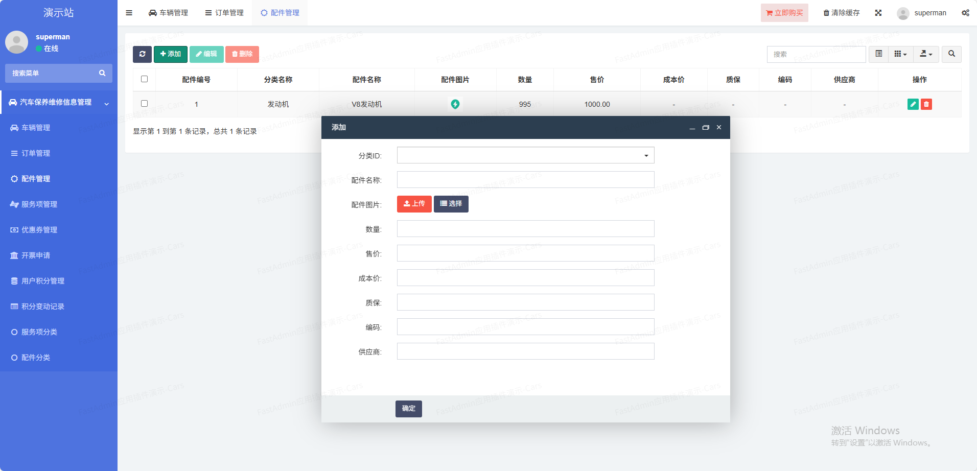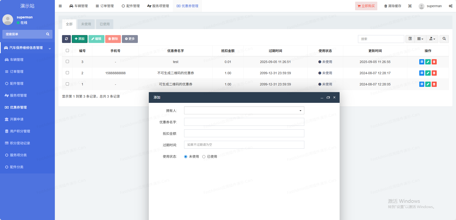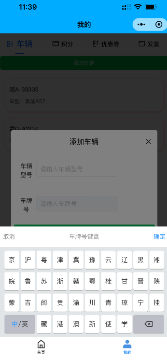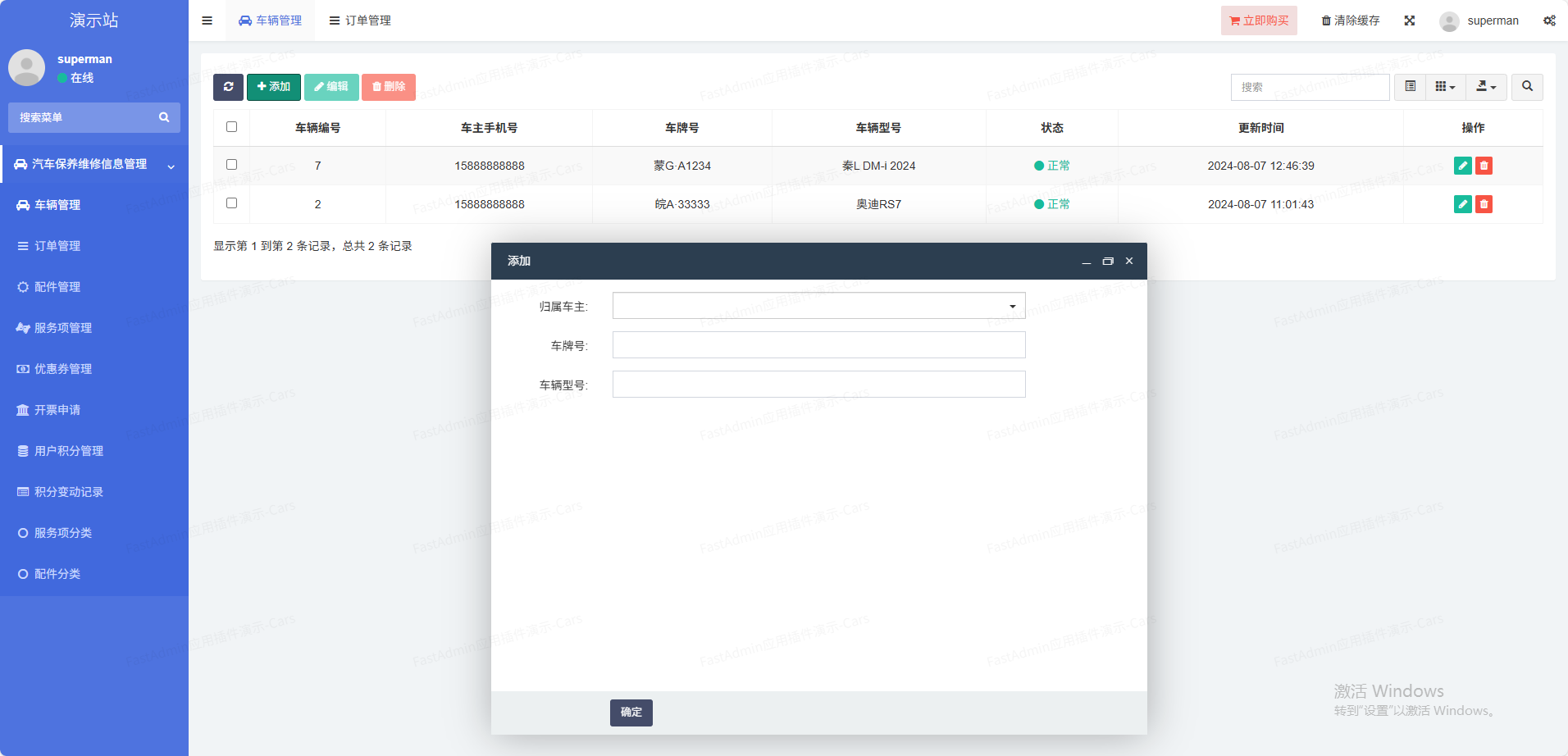 用户和后台可在线添加车辆,支持添加多辆车辆。
