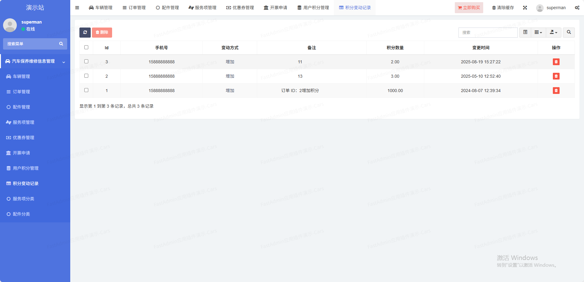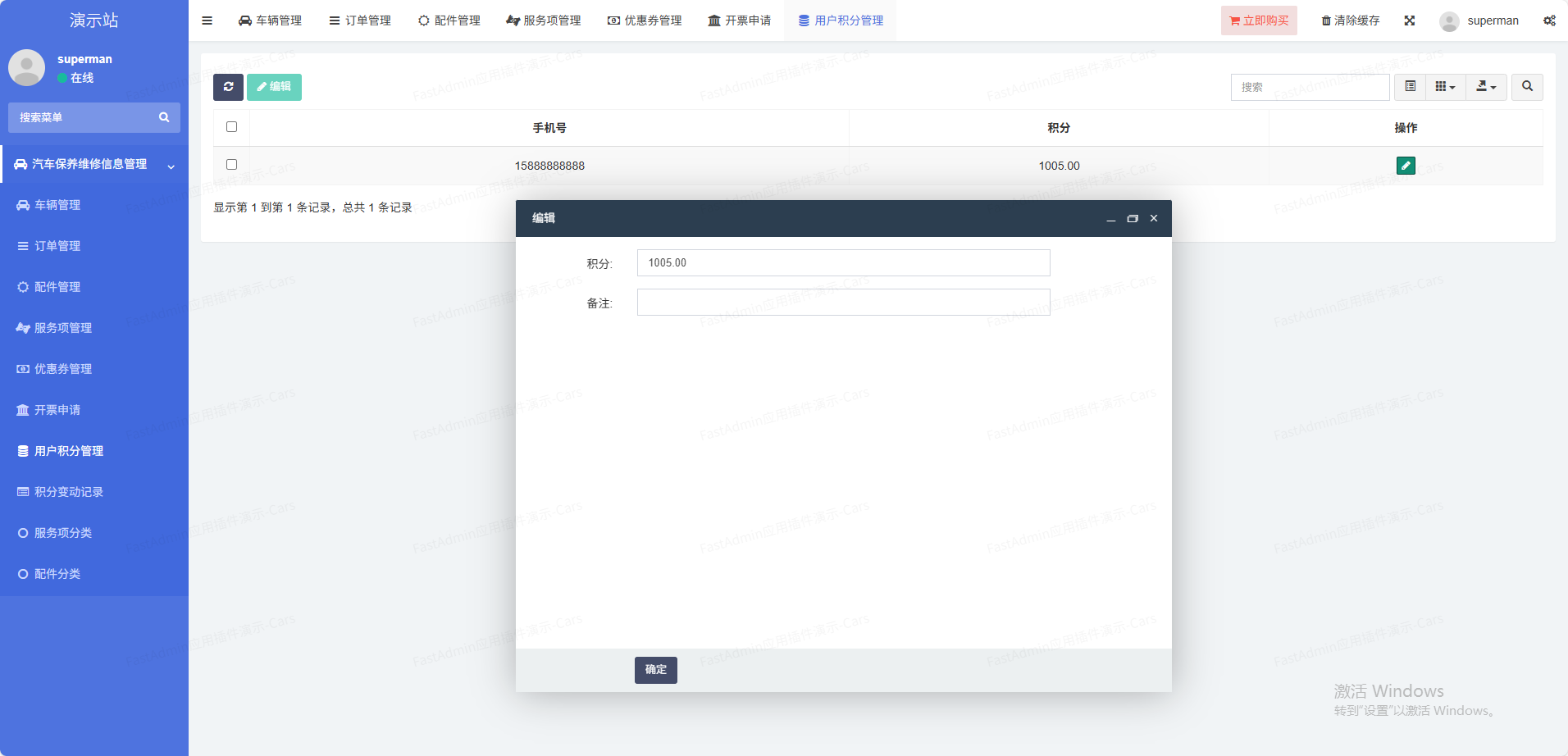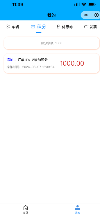 用户在完成订单后将积分自动添加到用户的积分余额里,后台可对用户进行扣分。